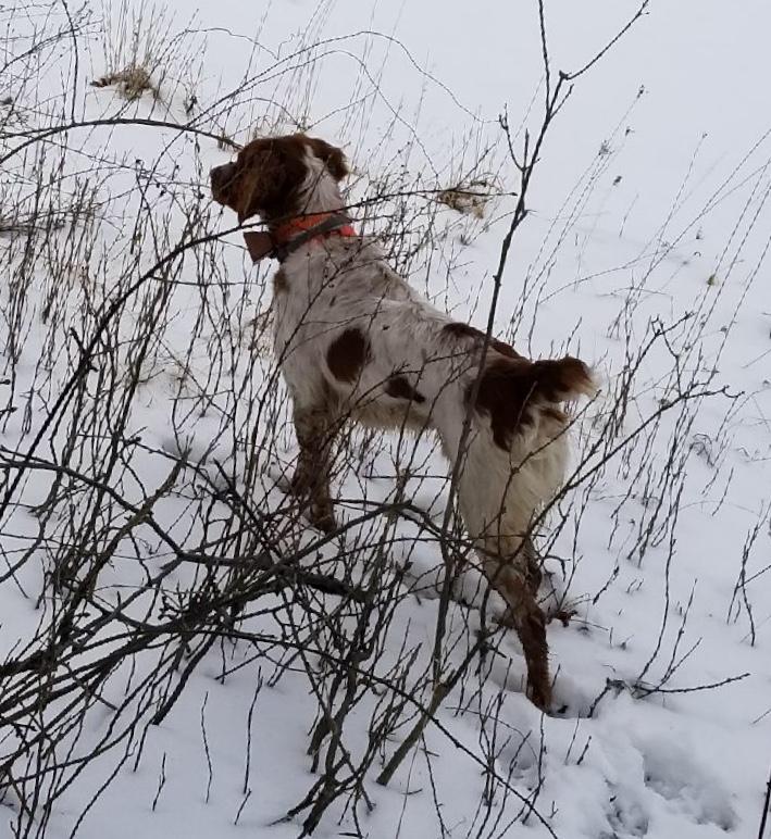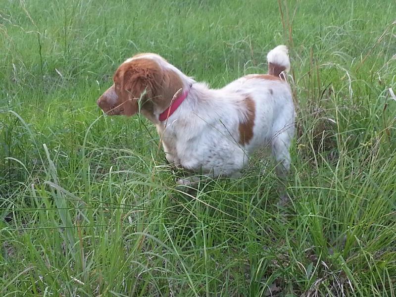 that was nothing short of amazing!!. At 6 months my trainer stated if you breed her, I want one of her pups. She holds a Point that makes me shake my head and say to myself, Wow, her instinct to find birds and hold a point is beyond belief. She has a great personality in the house and in the cab of my truck. She just loves Kids and is a great family dog. She loves people in general. She does need her exercise everyday as all dogs do but she thrives on running and learning. Very good breed and the breeder is doing a great job producing a High Quality Brittany.