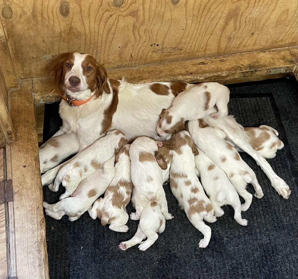 After going on a pheasant hunt in 2016, I decided I was tired of losing birds. I did a lot of research on breeds, and talked to quite a few breeders. After Chuck and I had talked, I realized I had found my Breeder and hopefully a great pup. BEYOND! Smalls, my female Brittany, is an amazing, personable, great to train, but most of all, a hunting machine. I took her to an awesome trainer, Nathan Tekell, out of Winters Texas. Nothing but praise and high hopes for Smalls. I’ve been very fortunate to get a dog that both will go on point and then retrieve. Most of this by bloodline and instinct.