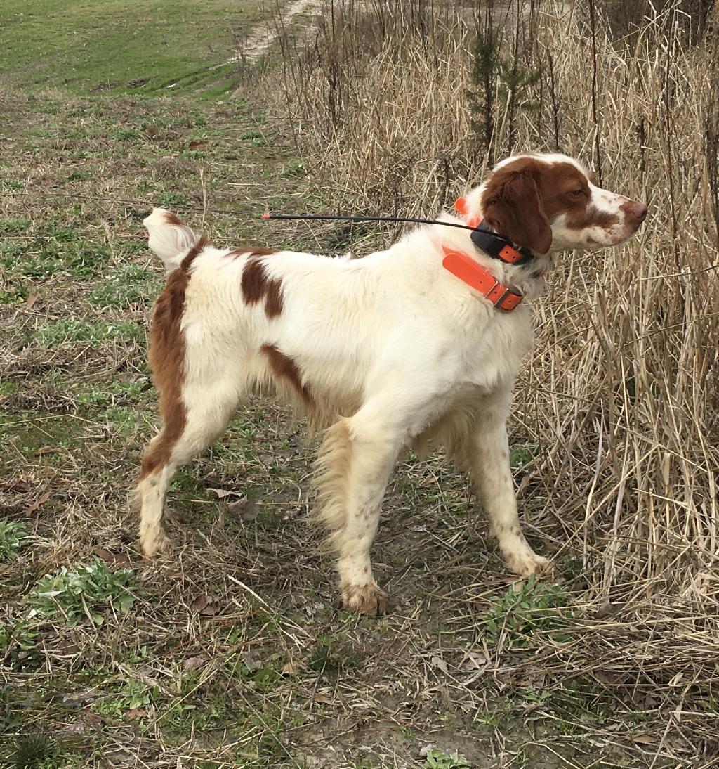 that was nothing short of amazing!!. At 6 months my trainer stated if you breed her, I want one of her pups. She holds a Point that makes me shake my head and say to myself, Wow, her instinct to find birds and hold a point is beyond belief. She has a great personality in the house and in the cab of my truck. She just loves Kids and is a great family dog. She loves people in general. She does need her exercise everyday as all dogs do but she thrives on running and learning. Very good breed and the breeder is doing a great job producing a High Quality Brittany.