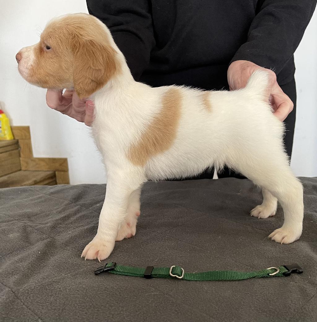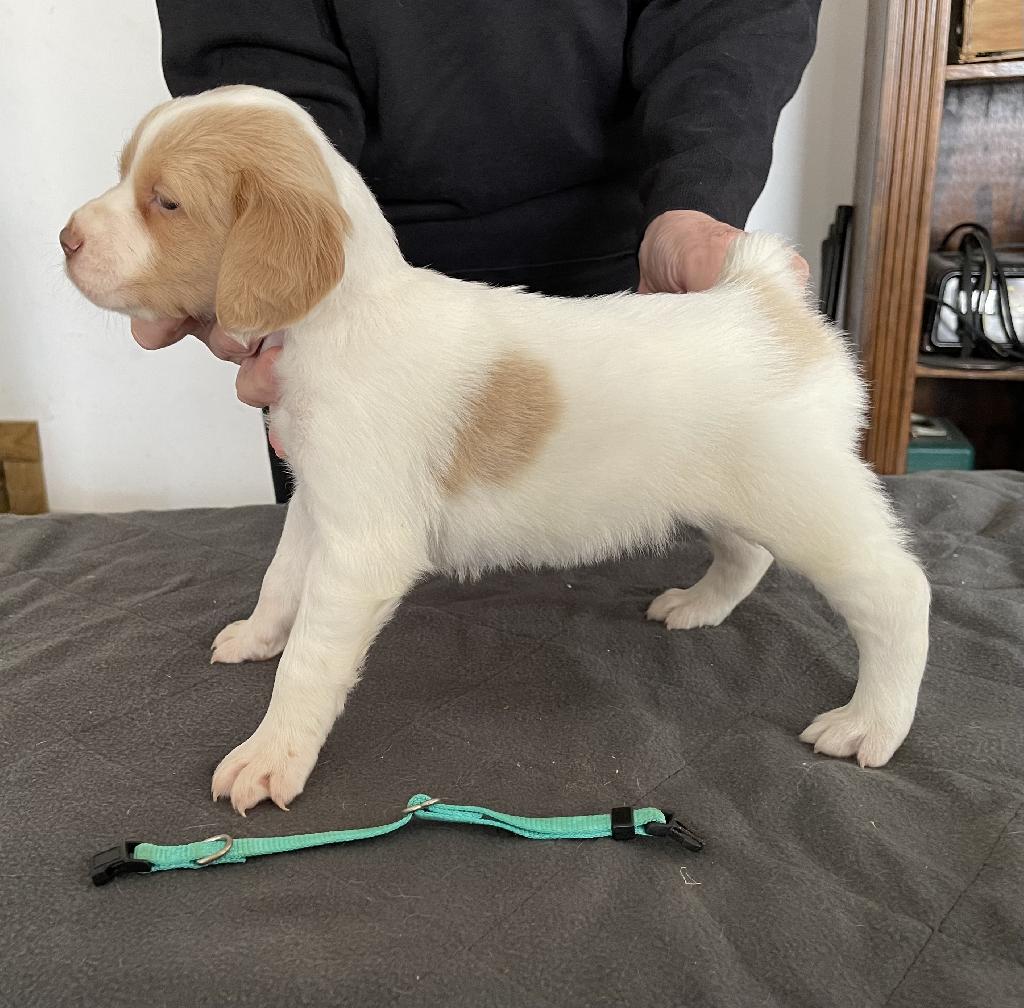 River Haven Brittanys has one male and three female pups available out of the River Haven’s Blaze’n Bandit x River Haven’s Izzy On The Eyes litter. The pups are 4 weeks old and they were born on December 14.