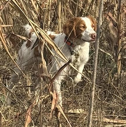 Mac is a dynamic bird finder with outstanding game drive and beautiful pointing style. He has a great temperament and is quiet and reserved in the kennel. He has an athletic and snappy stride, with medium to long range and hits the cover with drive and determination. He’s easy to cast and has great check-in with a steady 9 to 3 forward hunting pattern. He’s staunch on point and marks his downed birds well with a swift natural retrieve. He has trained with multiple dogs and handlers and gets along with everybody. He is an outstanding young bird dog and will provide a lucky hunting family with many years of field and family companionship.