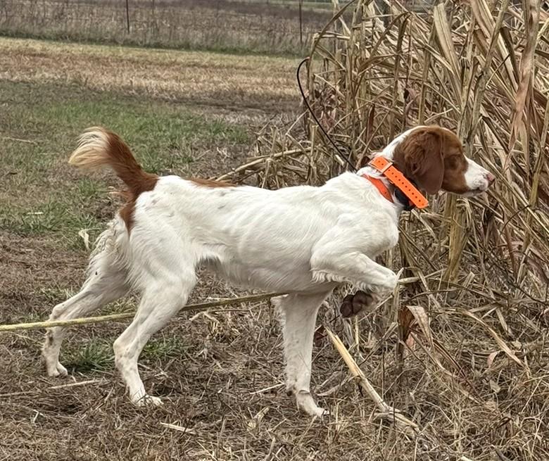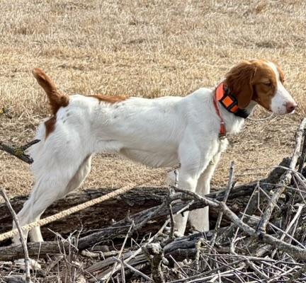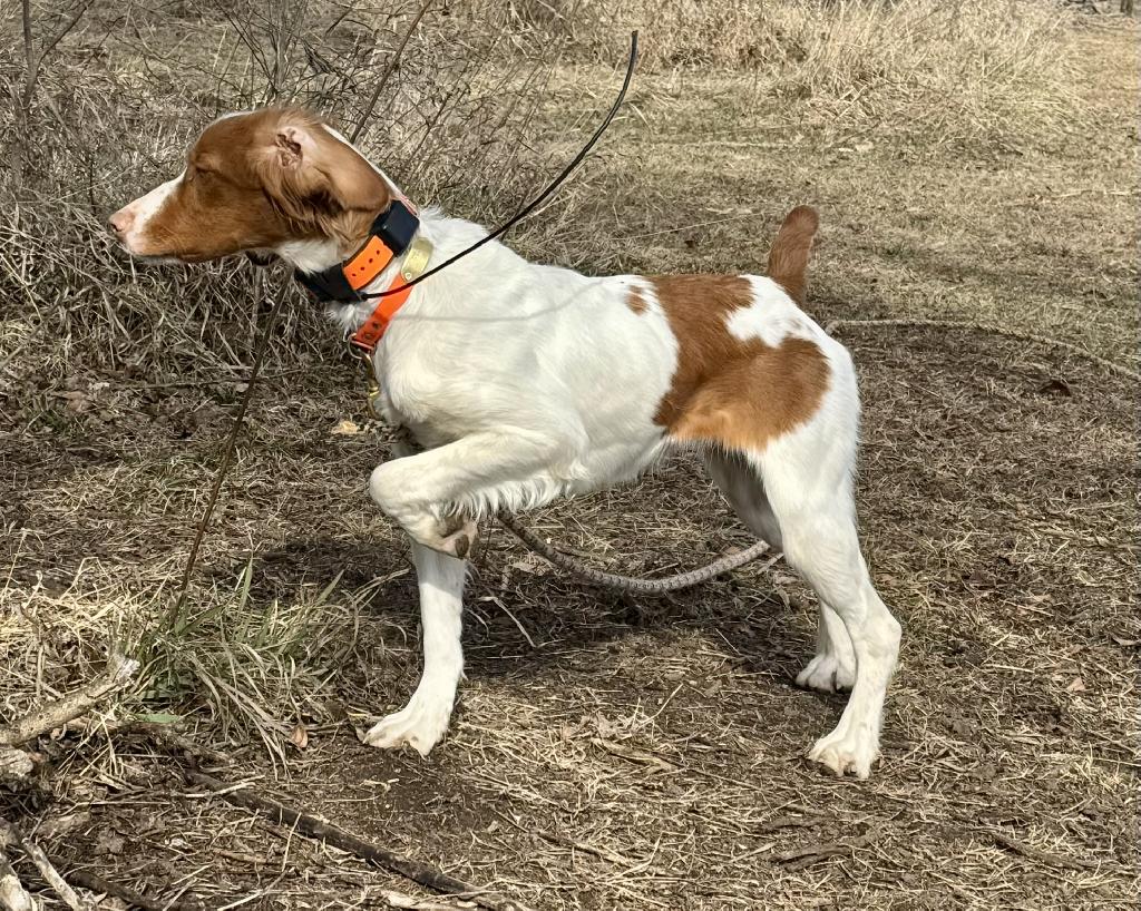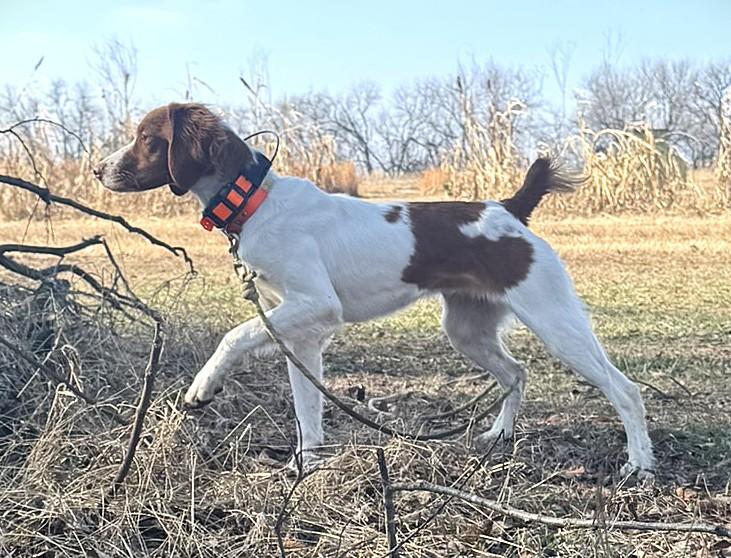 Stella was whelped here at the kennel and has been in training since a puppy with 6 to 7 days a week in the field. She’s developed an intense desire to seek and find game, point staunchly and has been exposed to various field scenarios and hunting situations. She is familiar with the gun, retrieves naturally, e-collar conditioned, whistle trained and socialized with other dogs and hunters. She is current on all vaccinations and heartworm. She is excited, eager and ready to hunt!
