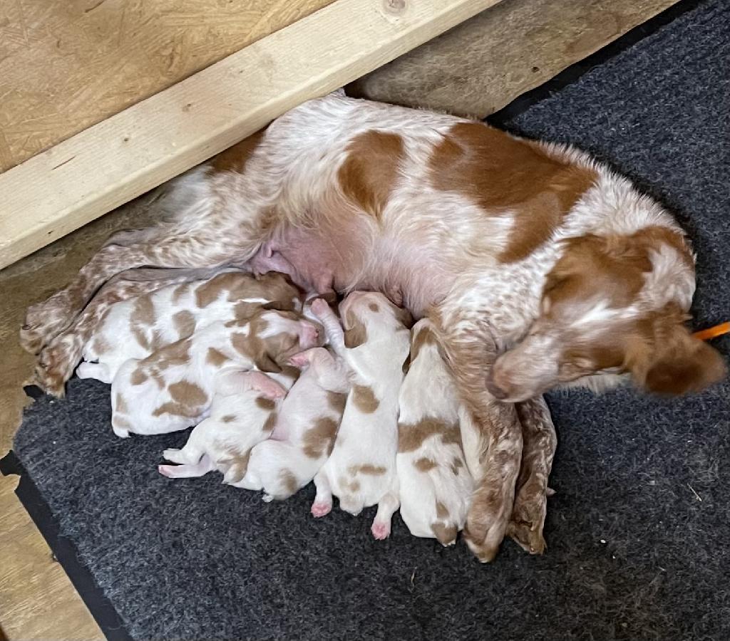 River Haven Brittanys is pleased to announce the arrival of the River Haven's Blaze'n Bandit x Gambler's Hope'n Time'll Fly litter. There are 2 males and 5 females.