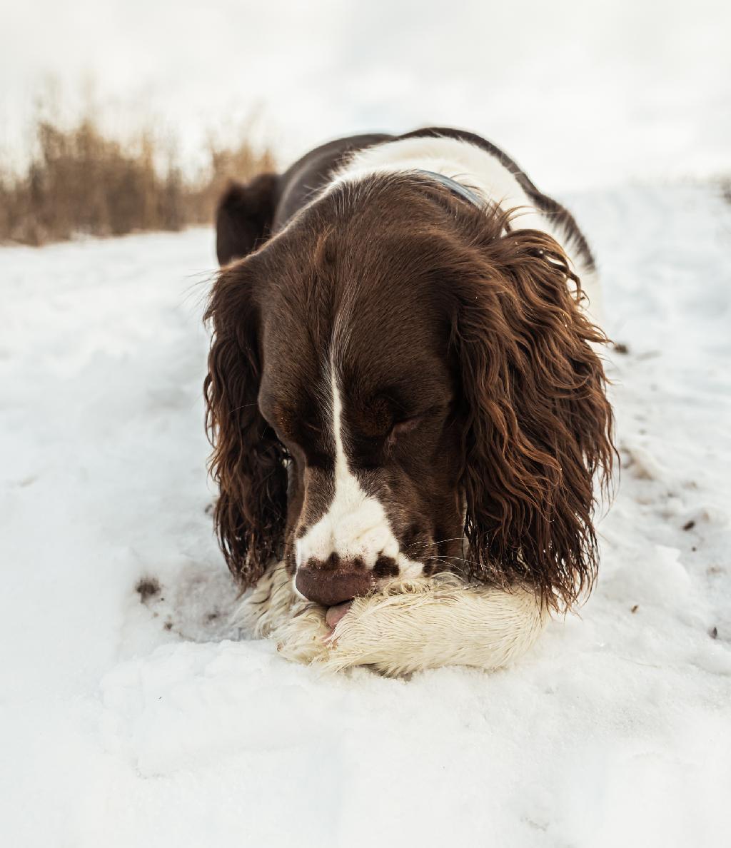 As opening weekend and memories of early fall rambles through our favorite covers begin to fade, winter settles in across the northern reaches, signaling the last call for many bird hunters. For many of us, hunting the last days of the late season are an anticipated tradition, as we take extra time off around the holidays to spend time with family or travel to western or southern destinations to extend our season. Much like us, who will hunt as long as we are warm, dry and comfortable, our dogs are tough and ready for these winter wingshooting wanderings. Hunting in the cold and snow can be enjoyable and rewarding but following a few simple considerations will help to keep your dog safe and end the season on a high note.