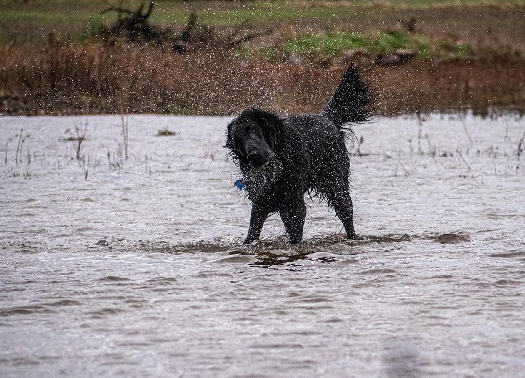 5. Flat-Coated Retriever : Flat-Coated Retrievers are known for their proficiency in retrieving waterfowl. They have a sleek, dense coat that repels water and a graceful yet powerful swimming style. Flat-Coats are loyal, intelligent, and possess a strong desire to please.