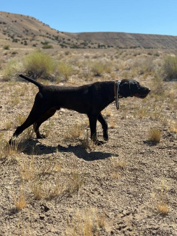 Sid II vom Red-Rock 1.5 years old. Sid Is another really nice high drive dog with a remarkable coooperation. He has a lazer dart for a nose. He will work well as Upland dog he loves to search and work birds. He has a nice short tight coat and dark pigment. Hard to take solid photos but he is stunning. He is great with people, kids , and dogs. loves to please the handler.