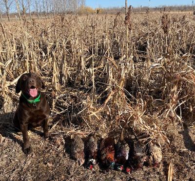 We stand two AKC and CKC Registered Labrador Retrievers. One Chocolate and One Red Fox. Both have produced beautiful family dogs and hunting dogs.