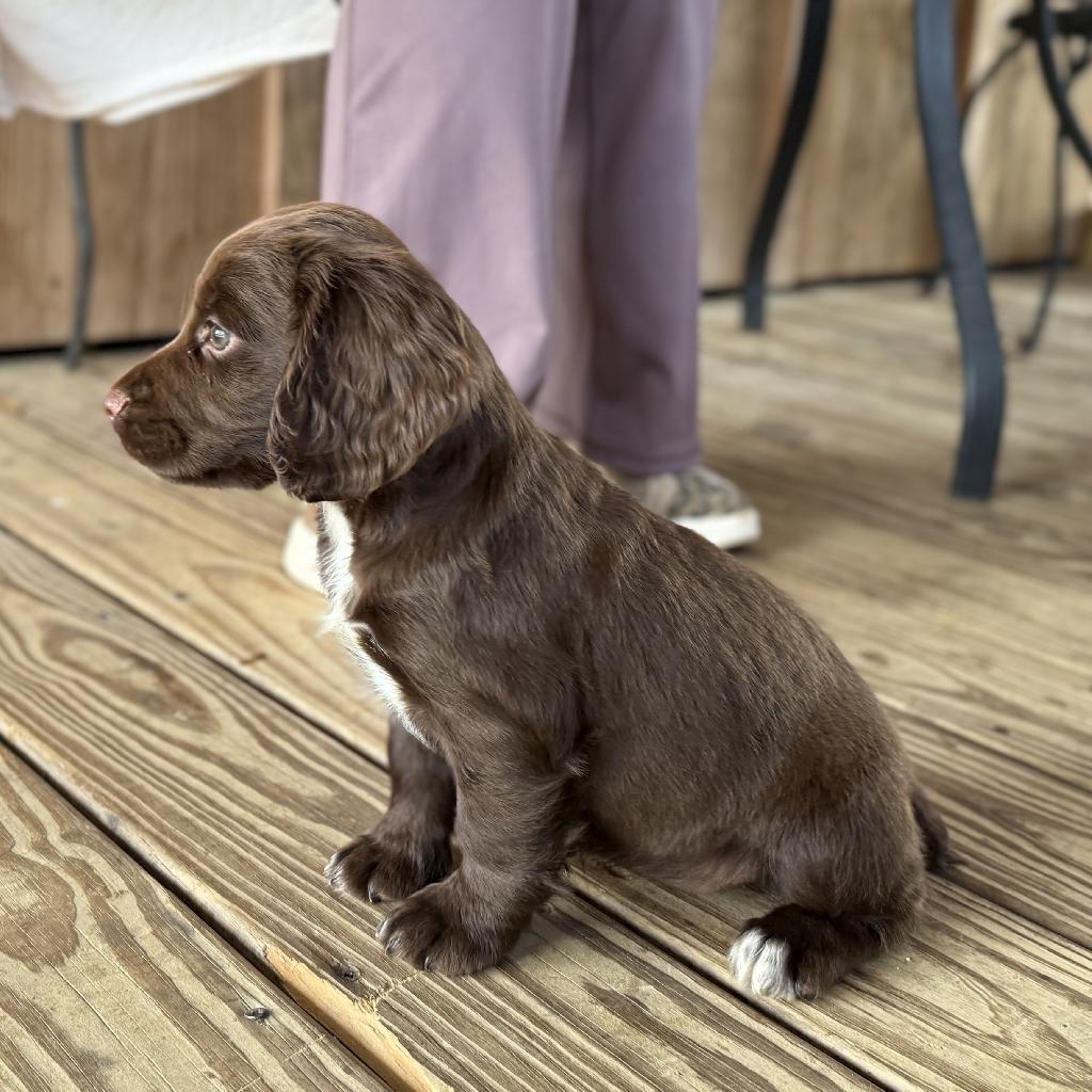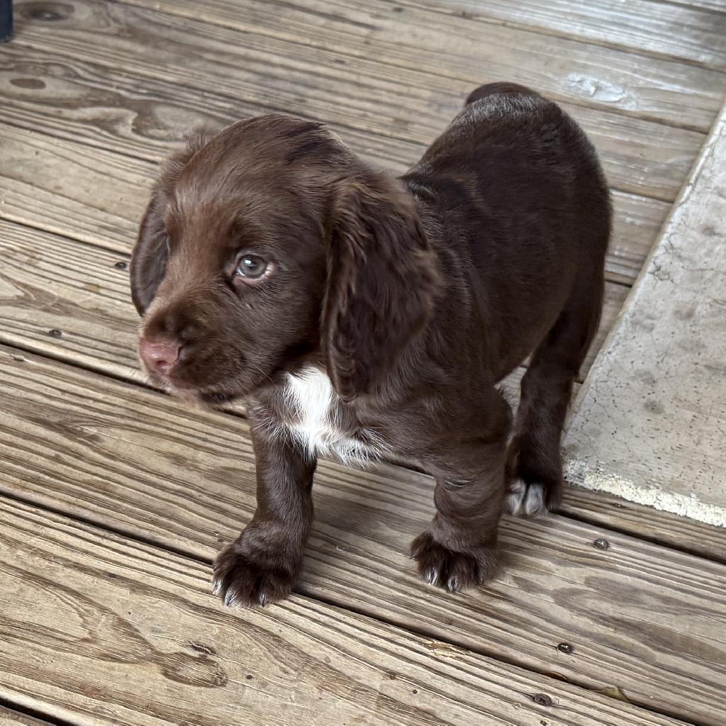Field BredAKC English Cocker Spaniel, whelped December 19th, & ready for a new home today! Liver with white markings on her chest and feet. This pup has an excellent pedigree, and has field-proven parents with outstanding hunting ability. $2000, including $500 deposit. Message for more information. #gundogs #gundogcentral #huntingdogs #sportdog #fielddog #dogsofgundogcentral #englishcockerspaniel #flushers #puppiesforsale #liver #featured #female #mudslidewinstonhopkins #mudslidegoldengirl #lowndesboro #alabama