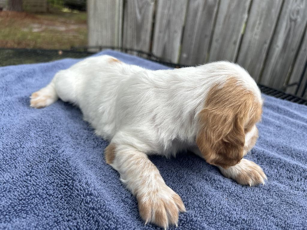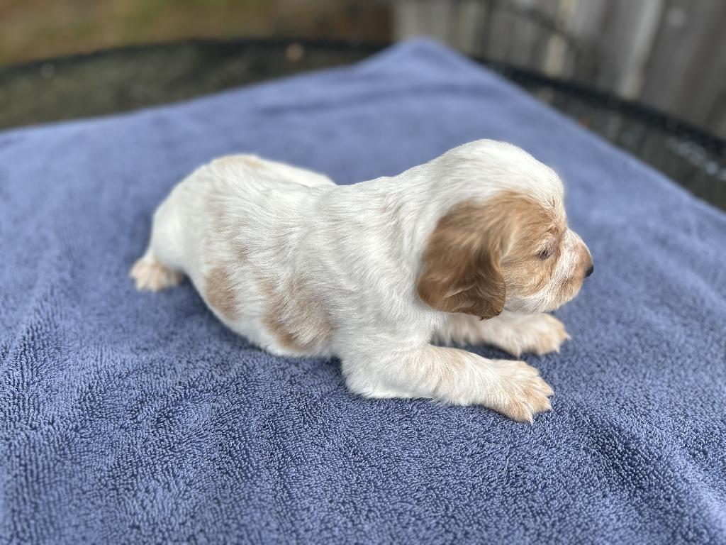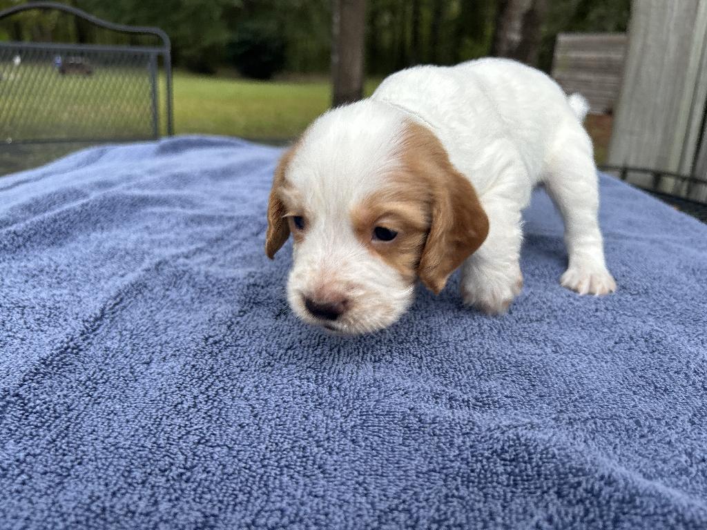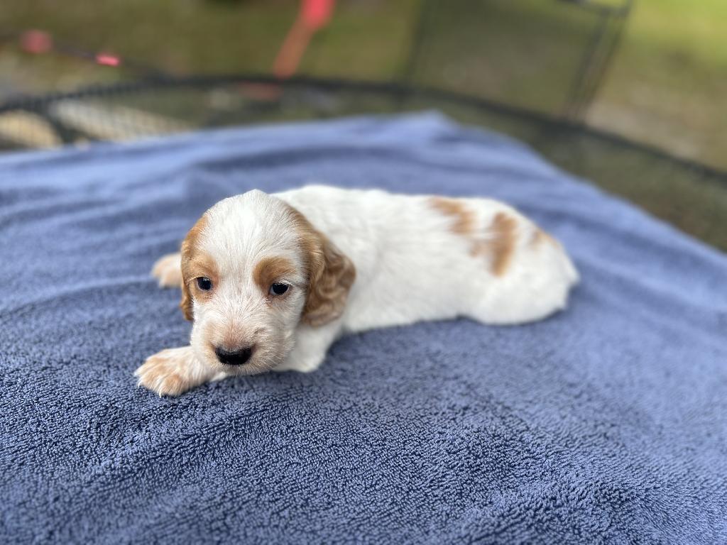 These are field bred English Cocker Spaniels! The puppies will come with a full AKC registration. The sire is my personal hunting buddy! He has a great switch. He is a family pet until the camo comes out and then he is ready to hunt them birds! He has produced great hunters and pets! The dam is one of the most loving cockers you will find. Plenty of energy and drive. Loves hunting everything! My family loves our dogs and the puppies. They will be played with daily and socialized with dogs and kids before going to their new homes. The puppy will have its tail docked, 1st and 2nd set of shots, and wormings at 3,5, and 7 weeks. DNA clear on Sire and Dam. Eyes and Hips Normal. 1 year health guarantee. If you have any questions I would love to answer them and see if these pups might be a good fit for your family! Thank you #gundogs #gundogcentral #huntingdogs #sportdog #fielddog #dogsofgundogcentral #englishcockerspaniel #puppiesforsale #orangeroan #forsale #gundogsforsale #huntingdogsforsale #male #onceinablue `moon` #oneinamillionfrommillen #millen #georgia