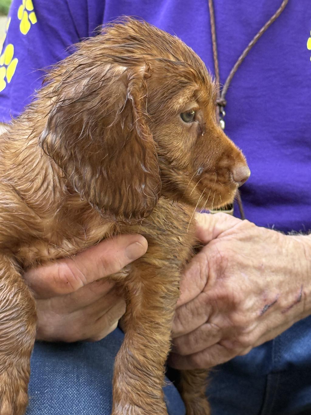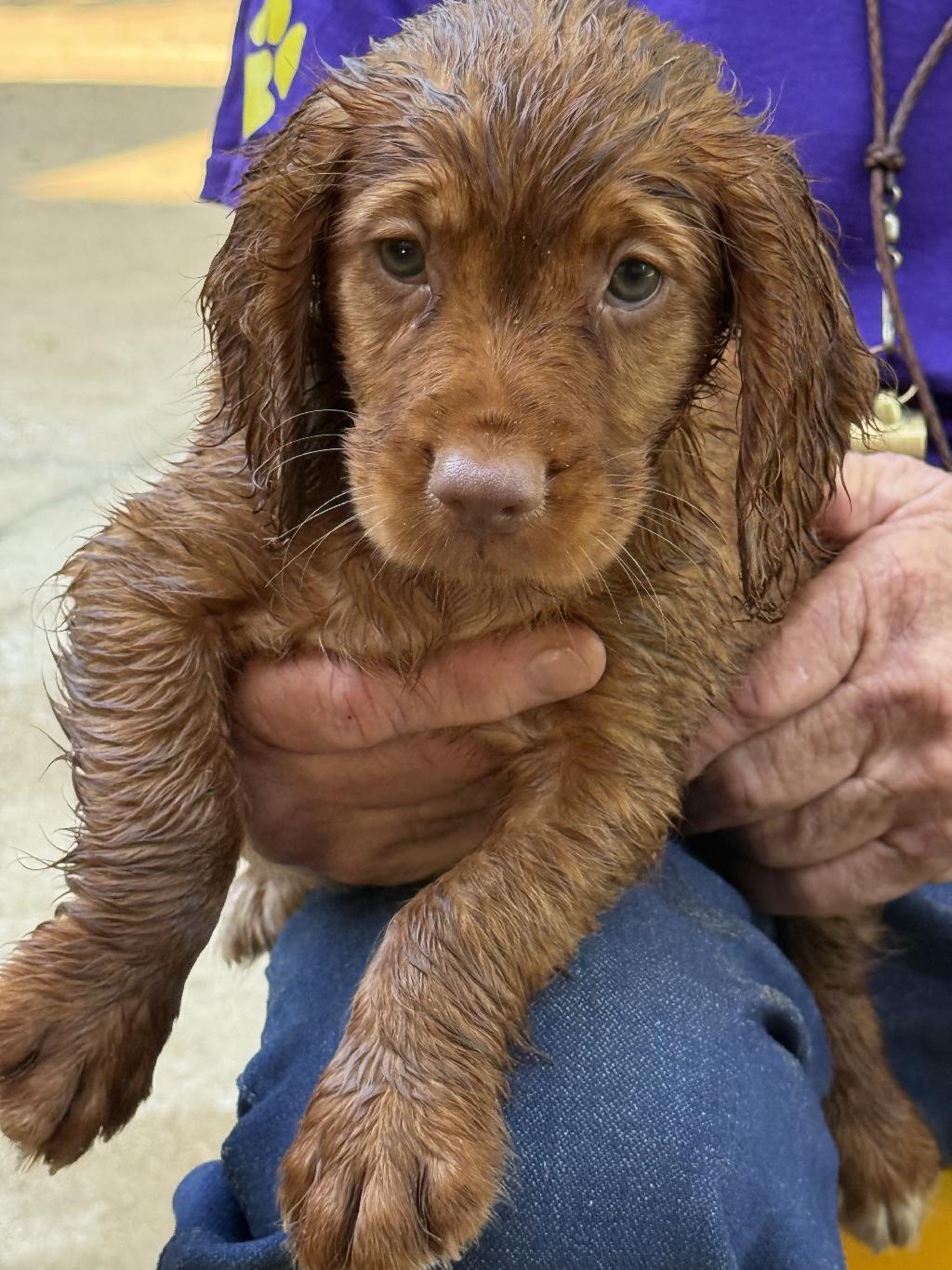 4 ECS. pups (1 female,blk/wh, 2 females red, & 1 male blk).These pups sire (Blitz) is a direct import from Poolgreen Kennels in the UK. He is OFA certified in hips, elbows, patella with clear eye testing. Blitz passed the AKC Jr.Hunt test. He is now being used in STex flushing and retrieving. He is a strong built,handsome and obedient liver male meeting all breed standards. Blitz is closely related to several English National Champions. He is linebred in FTCH. Argyle Warrior bloodlines.