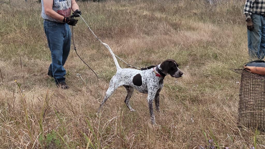 These yearling Pups are pointing birds and accustomed to gunshot on the flush.