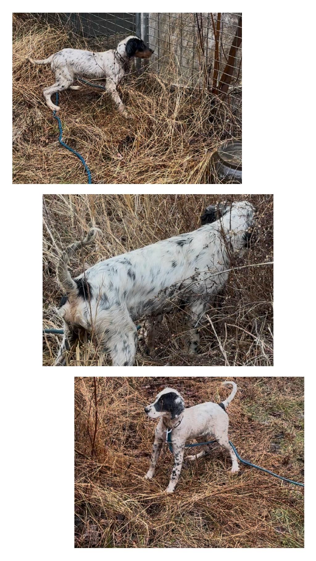 Arlen: she was the biggest from the litter. She definitely will be a big runner. She loves to run, and is very adventurous. She was able to point and hold for a bit
