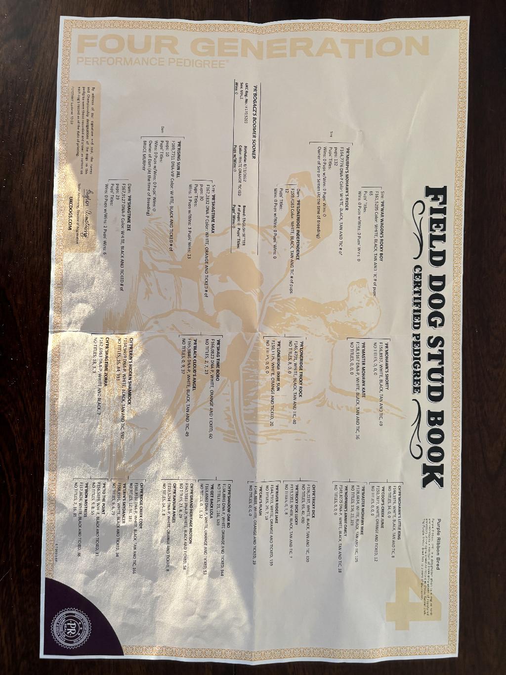 Boomer boasts an impressive lineage with a rich heritage of champion hunters. His sire, Murphy’s Mohawk’s Ryder, is a renowned field trial winner and was NSTRA’s dog of the year while his dam, Rising Sun Jill, is celebrated for her exceptional hunting skills and progeny. This lineage ensures that Boomer carries forward the best traits of his ancestors.