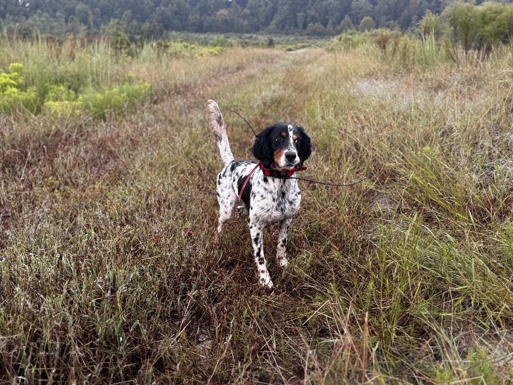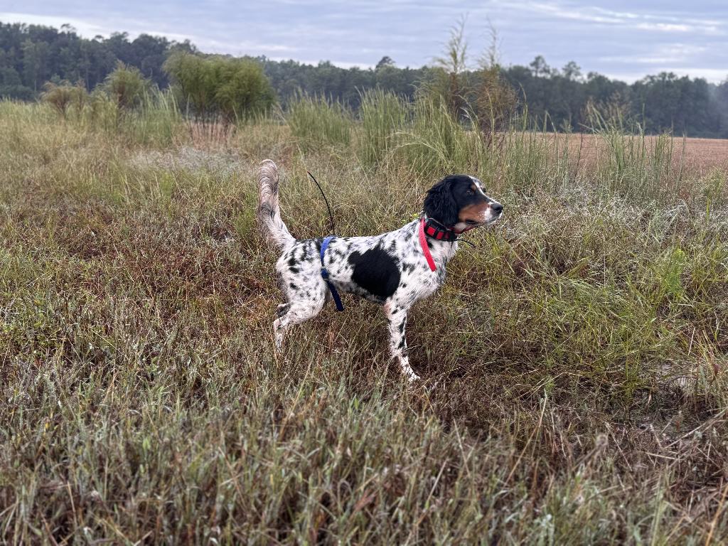 Male 2 year old English Setter great wild bird dog, steady through to shot. Has a great nose. Nice high head. Nice straight tail.