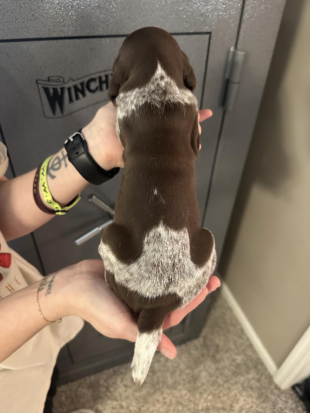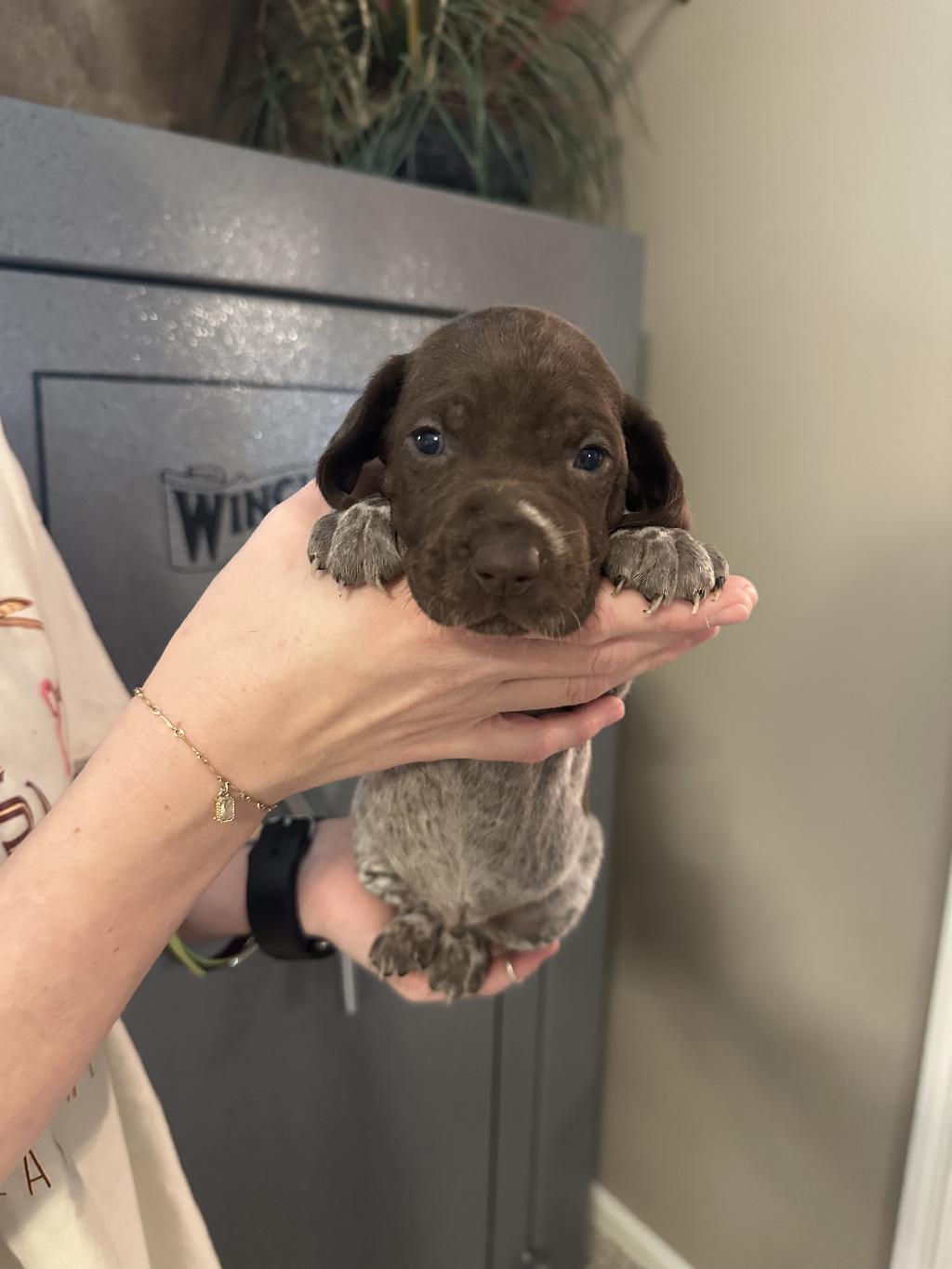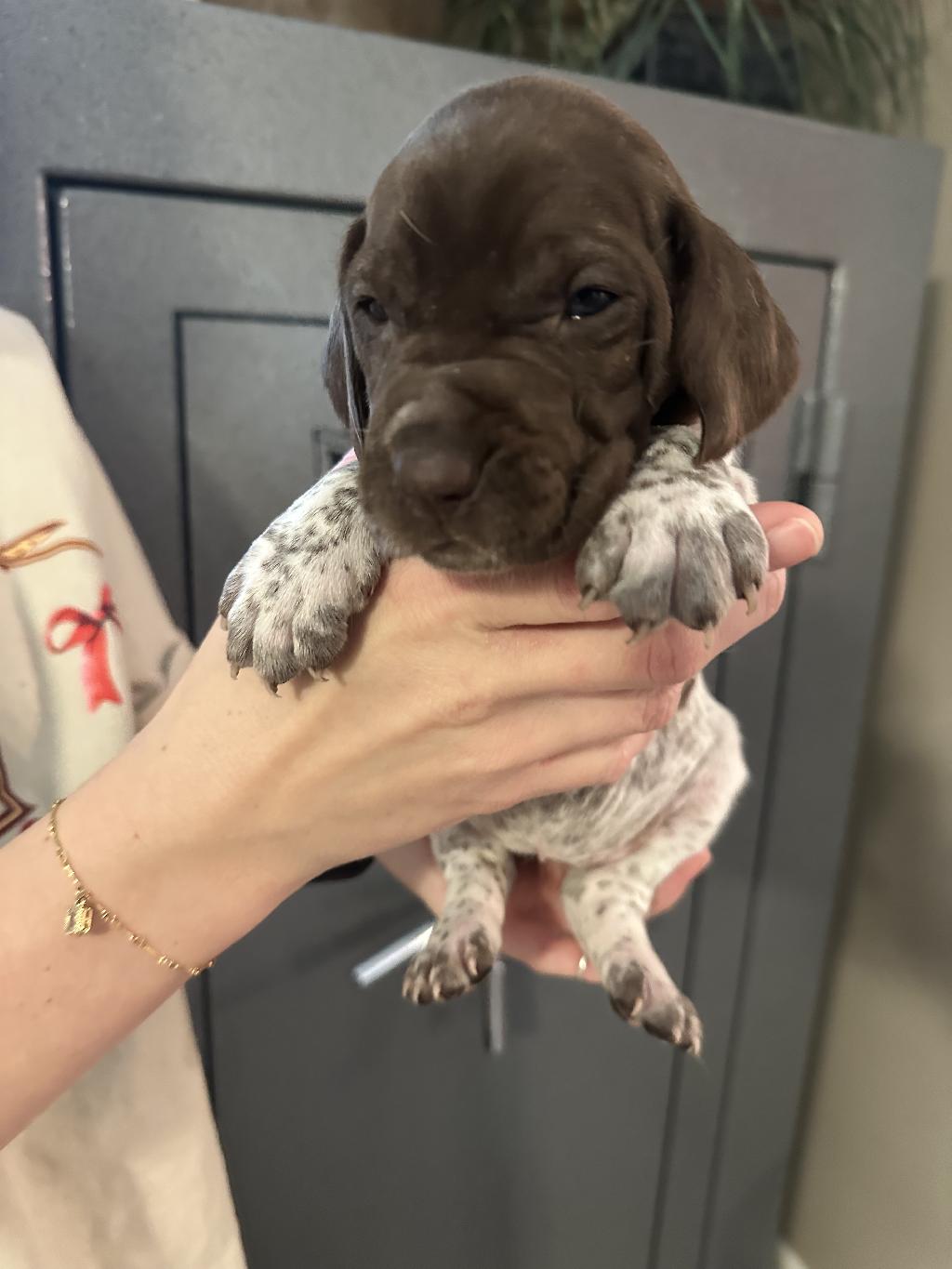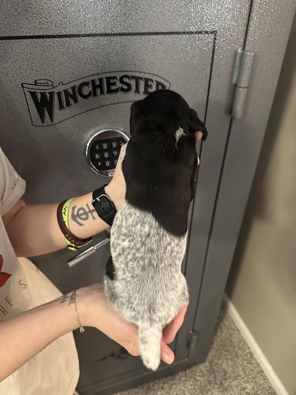 DNA Health Tested and OFA Certified. Good elbows and hips. Dash is named after his Grand Sire, 27XCH Rucks Brockway Mad Dash and is also the direct Grandson of Sharp Shooter’s Man in Black, the most famous Black Roan Gsp in history. He has a pedigree full of Master Hunters and Champions, VC and NSTRA