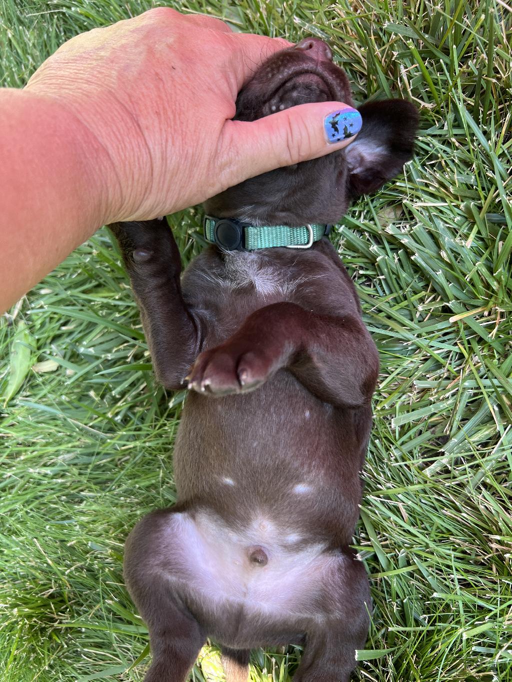 We are so happy with our experience working with Cheryl at Idaho Hunting Dogs. Every step of the process was very clear with communication, photos and then even a live stream once the pups were born. Our male pup is home now and settled, and he is such a great example of a German Shorthaired Pointer. He is not only beautiful to look at, but wicked smart and has great temperament. Cheryl socializes her hunting dogs so they are the best of both worlds. We would absolutely purchase a pup from her again.