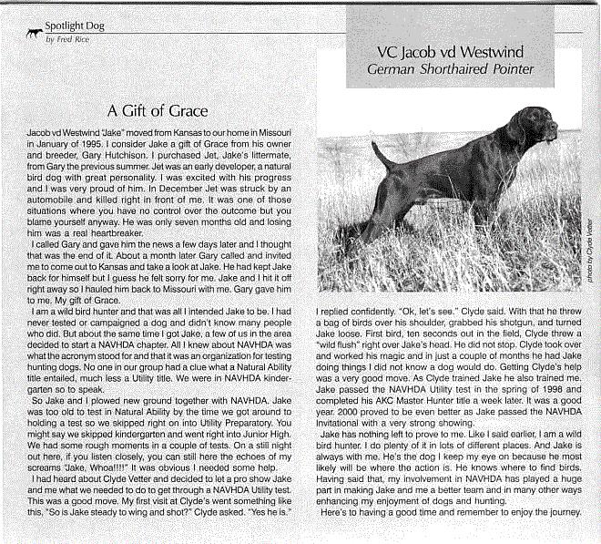 I can attest to the fact that Cheryl has a quality breeding program, that the care her dogs receive is of the highest quality (from pups born in her kennel to her retured senior dogs) and that her dogs (and the pups that come from them) are not only good hunting dogs, but are also good family dogs.