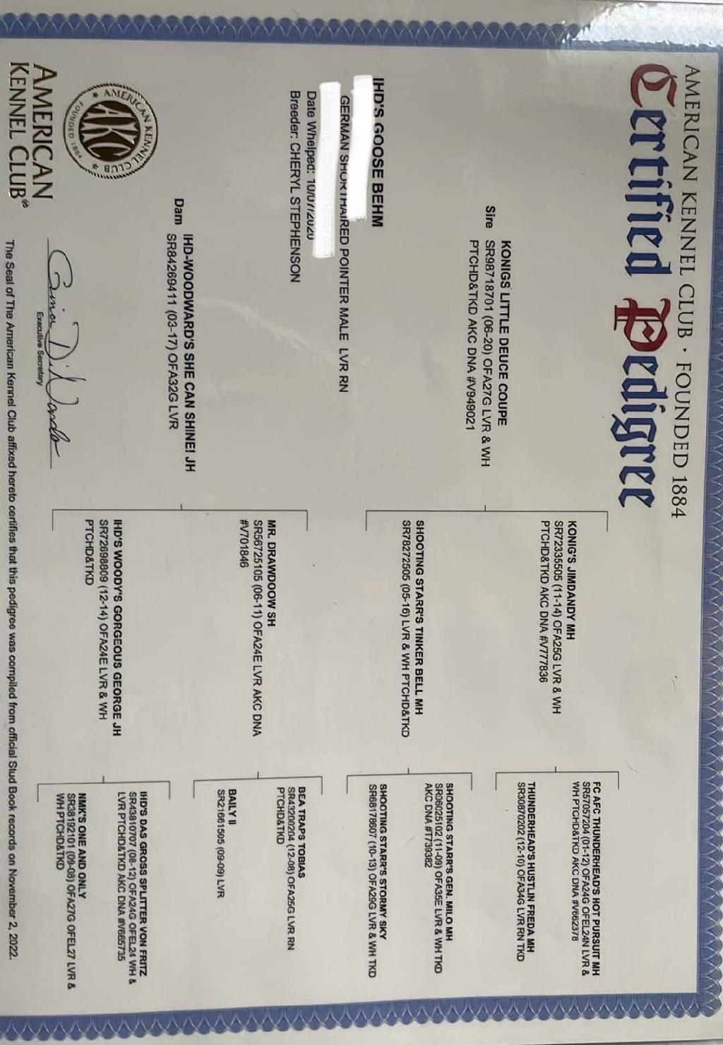 Idaho Hunting Dogs hands down has a superior breeding program. Cheryl is amazing! Provides a ton of information, she has her process and program perfected. We got updates on mama as she got close and As soon as the puppies are born you are getting play by play about the liter and Mama with regular live video and tons of pictures. We couldnt have asked for a better experience. Cheryl has a ton of resources and connections as far as products and training. She made the AKC process so easy. As far as our dog, Goose is 2 years old and is absolutely amazing, he is so smart, has such a personality and right off the bat was so birdy and training him was honestly a breeze, its like he knew it already just needed to practice and train us haha! Would absolutely recommend Idaho Hunting Dogs, best GSPs out there!