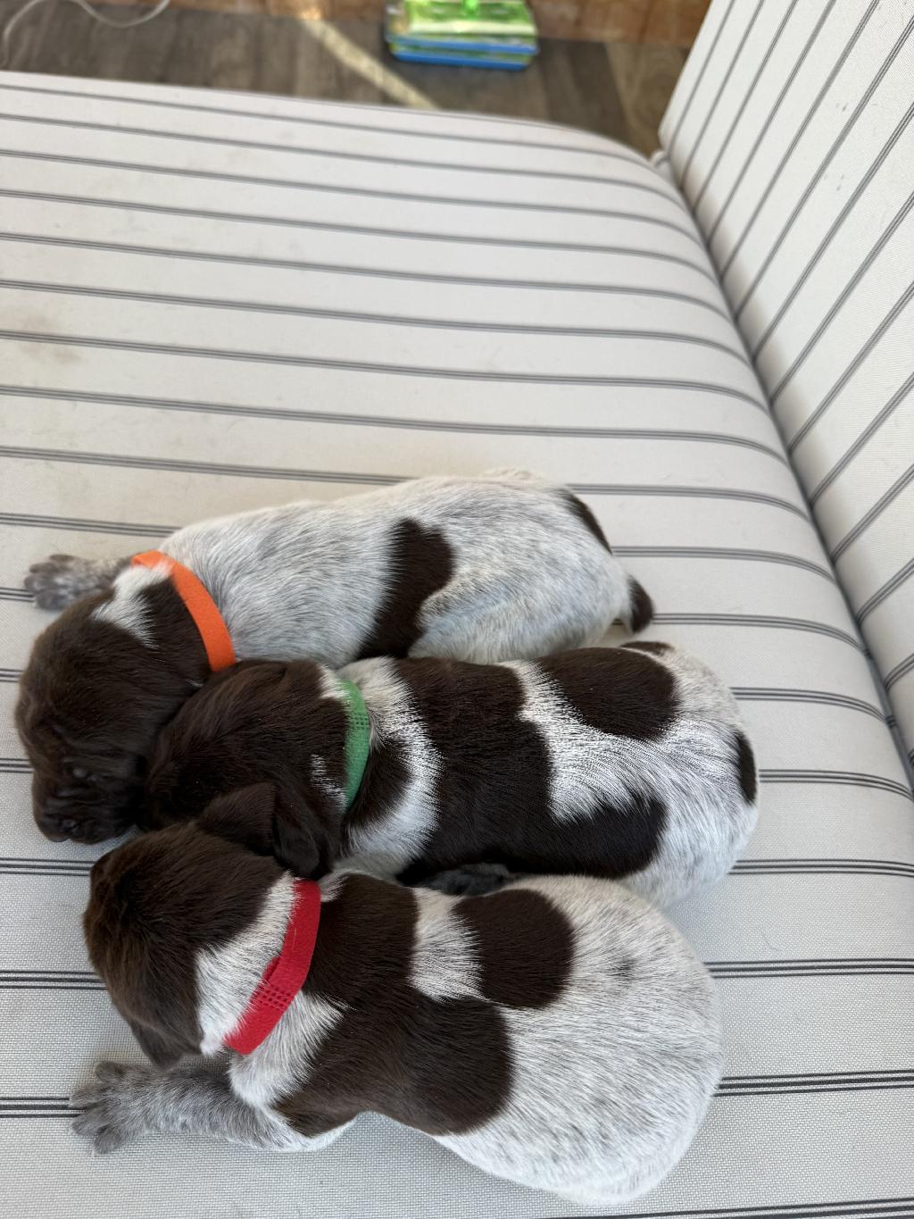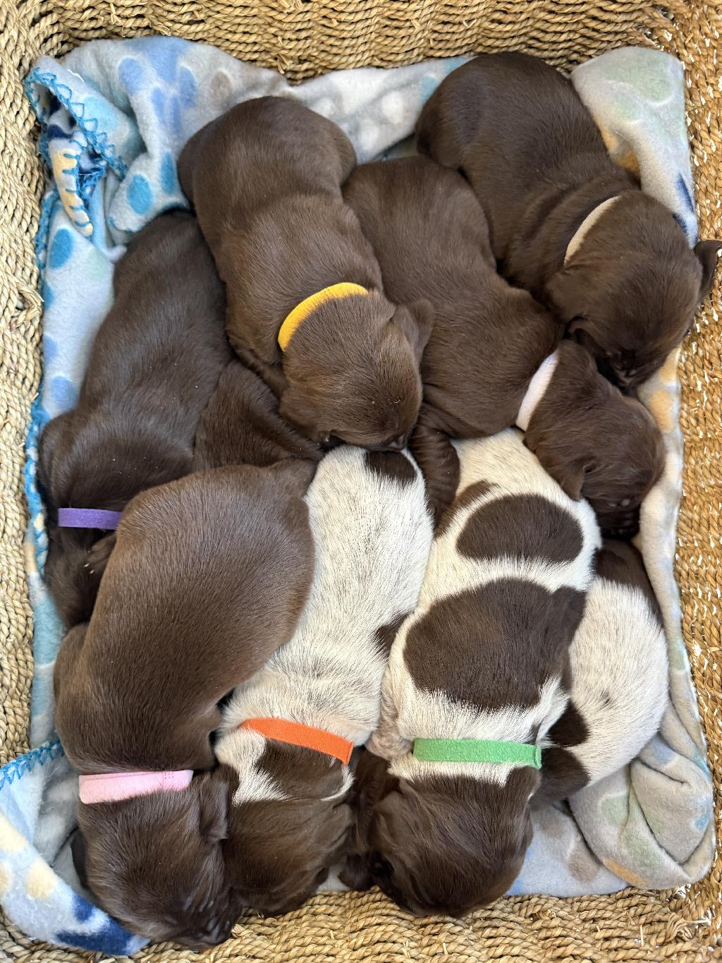 Six female and three male German shorthair pointer puppies for sale. I own both the mom and dad and both are great hunting and family companions. I expect the puppies to be the same. Puppies are priced at $1000. $100 deposit reserves Your pic and pics will be in the order of deposits received. Any questions call text or email me at