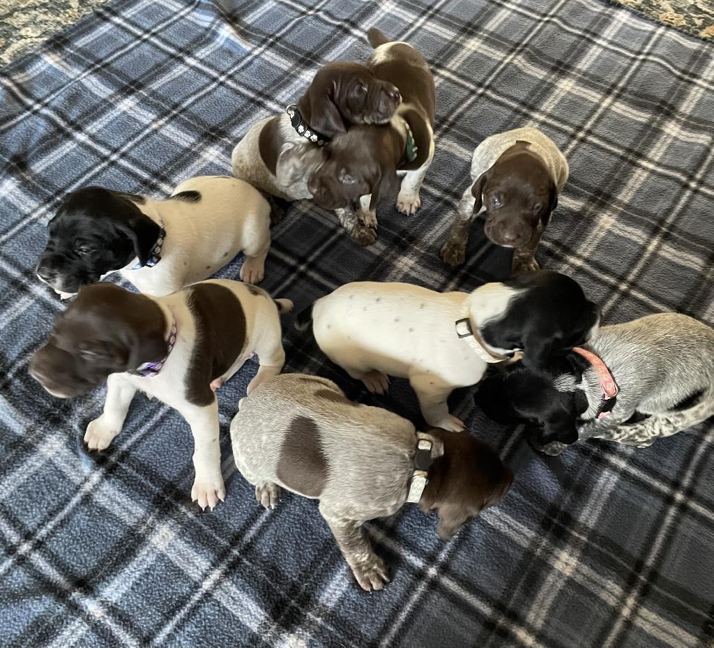 Highly Intelligent German shorthair pointer pups.Parents health tested & on premises. Parents have easy going temperaments . Strong hunting lines.