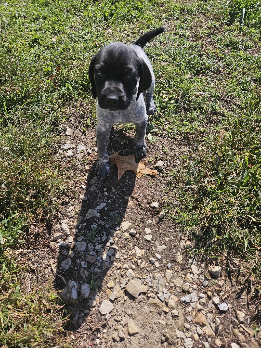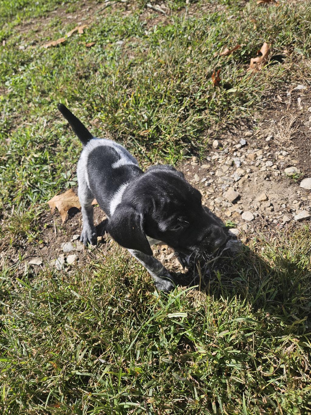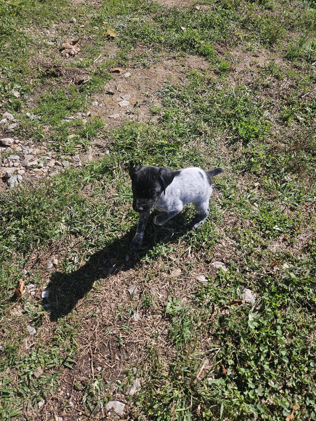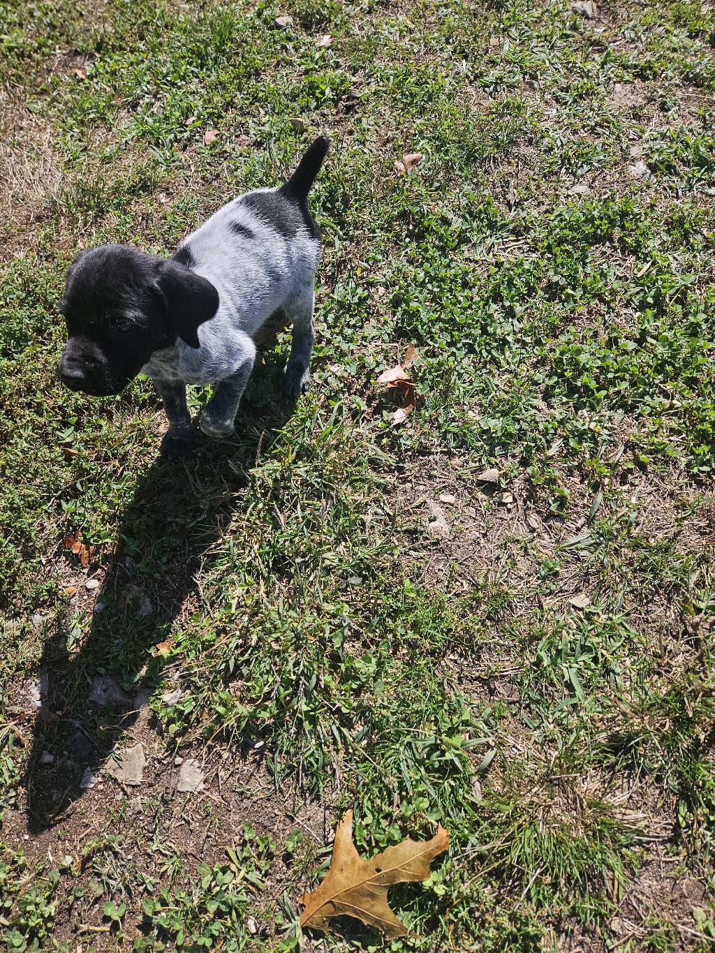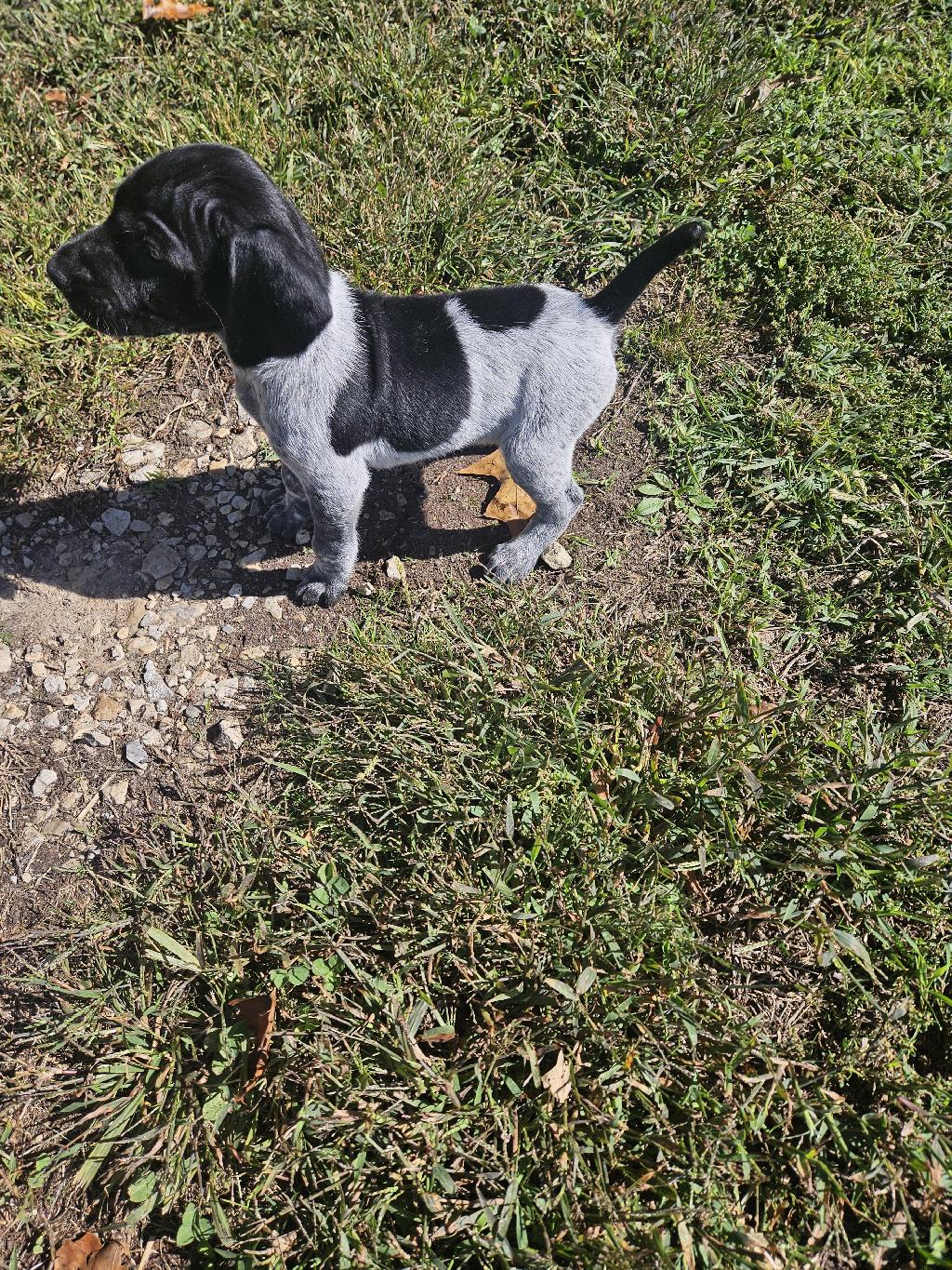 3 male german shorthair pups. There is 1 liver roan and 2 black roan males. They are out of akc registered parents and both parents are great hunters. The mom is high driven in the field and then when at home in the kennel you never know she is there