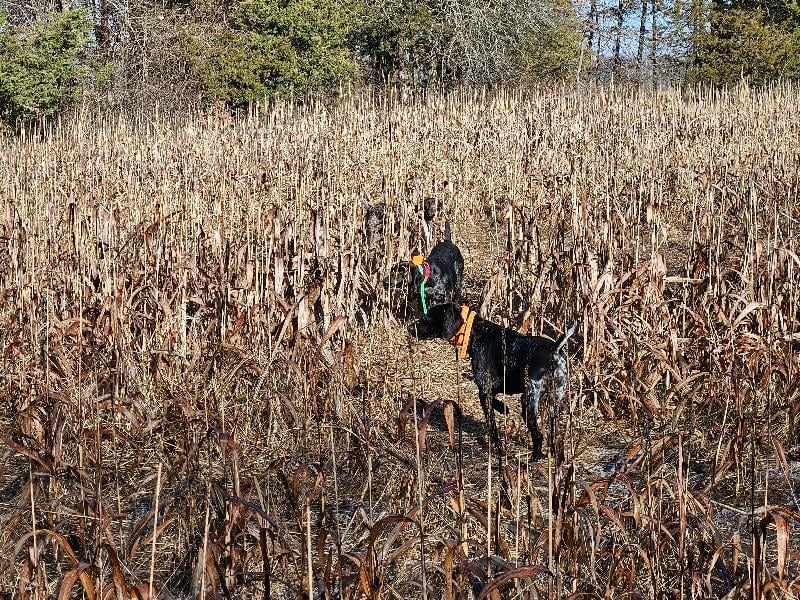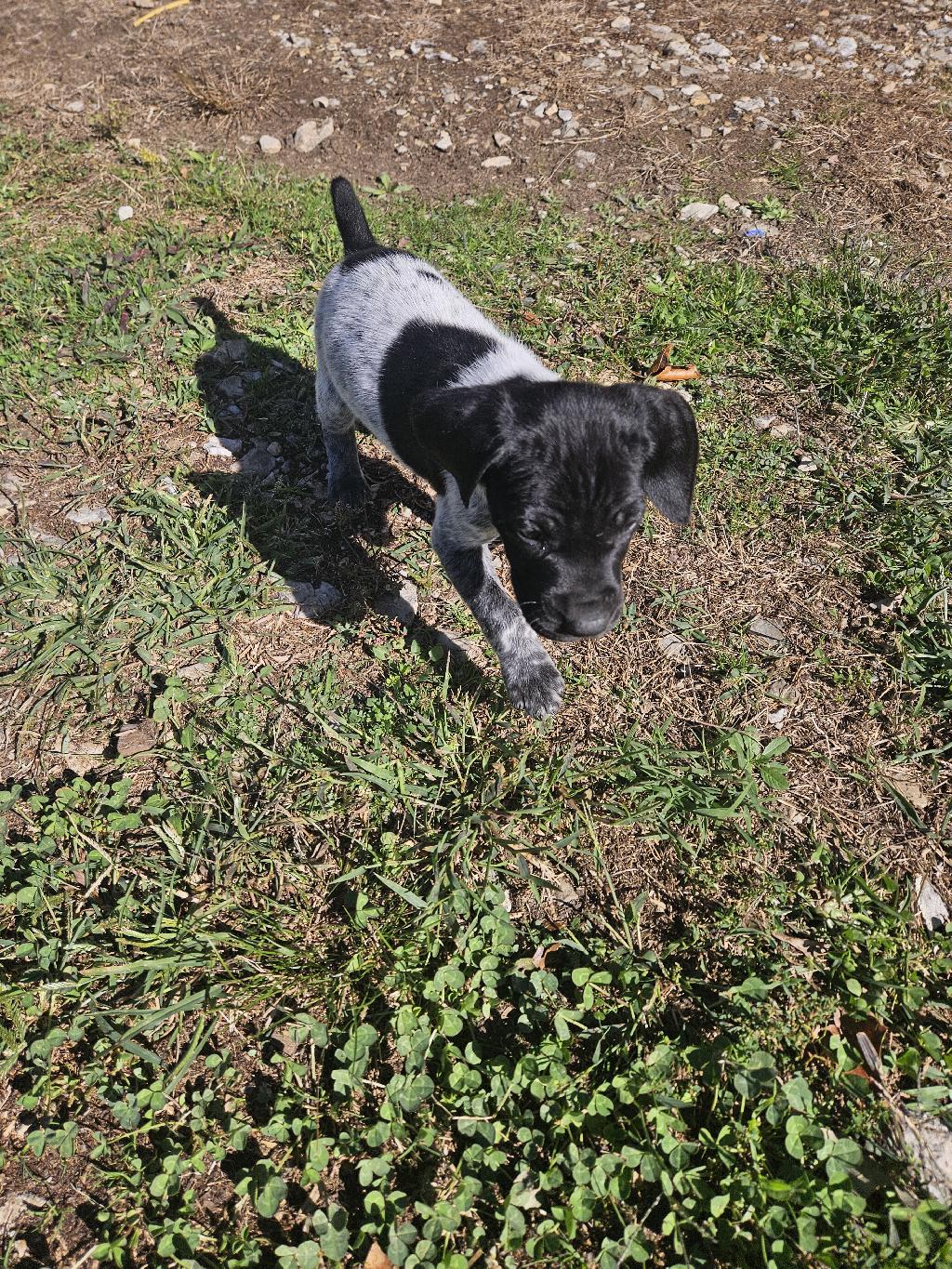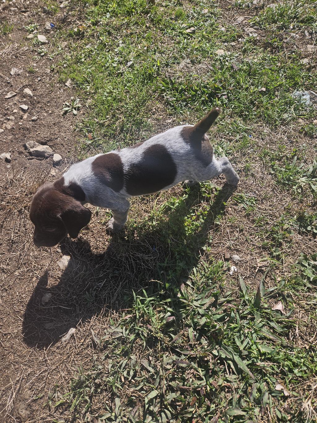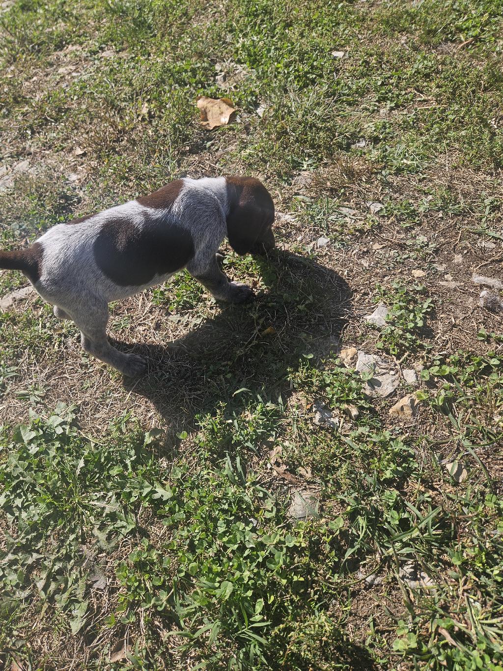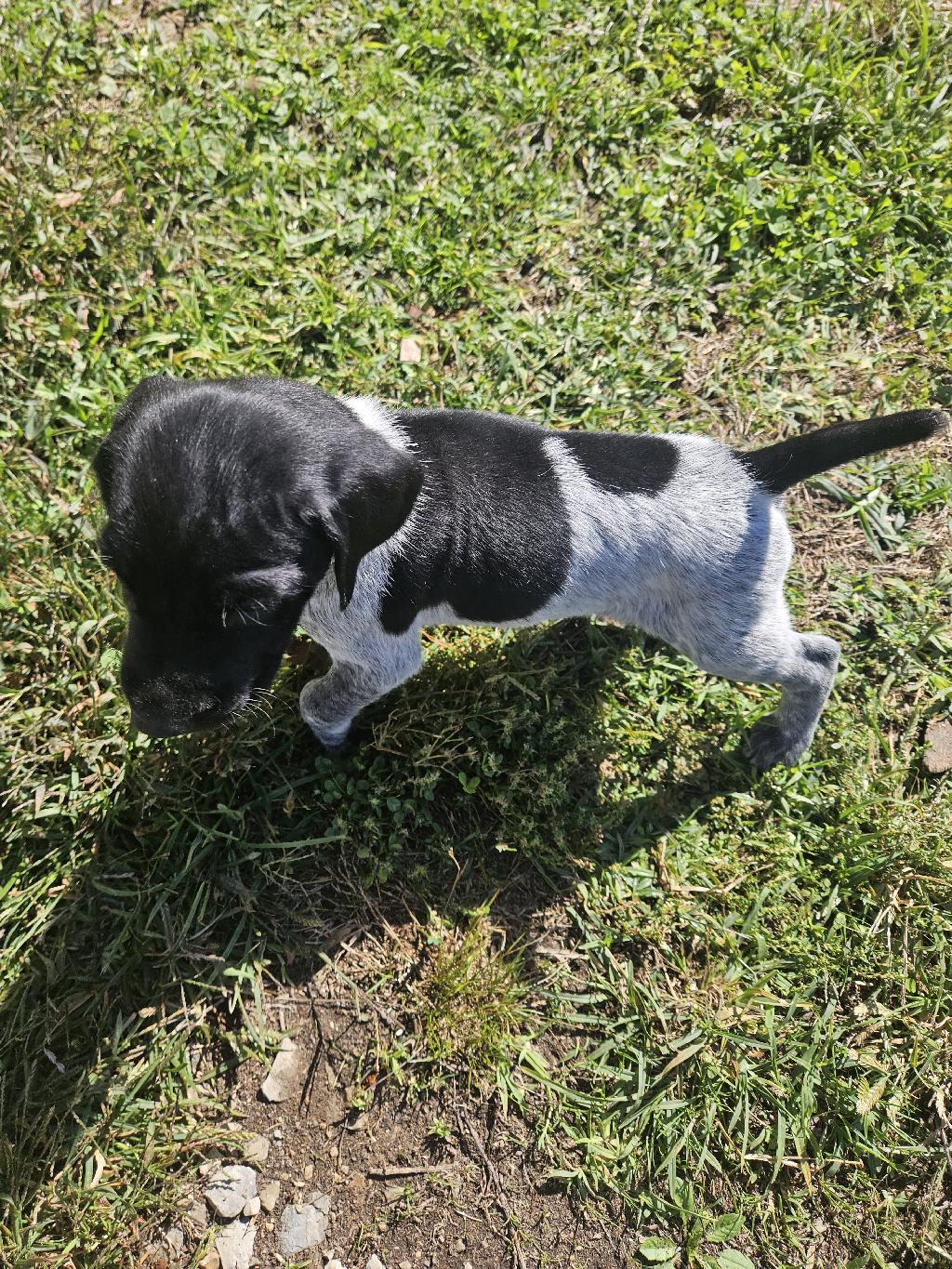 3 male german shorthair pups. There is 1 liver roan and 2 black roan males. They are out of akc registered parents and both parents are great hunters. The mom is high driven in the field and then when at home in the kennel you never know she is there