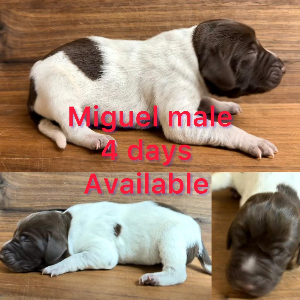 German Shorthaired Pointer puppies. Kate and Wyatt litter 3. Females $850, males $800. 6.2% tax will be added. Cash, , or Zelle. We also have the square device and app. Visa, master card or debit bank card.$400 deposit and 6.225% tax. Balance and 6.225% tax due on receiving pup. Born 1-7-26. Available for pickup on and after 3-5-26. Shipping is extra via Jetapet. AKC registerable, AKC Reunite microchip, tails docked, dew claws removed, vaccinations to date, health check and vet certificate by licensed veterinarian, champion bloodlines of Dixielands Rusty and Rustys Blue Earths Rex, Fancy white trash. Pups are liver and roan in color and vary from dark to medium roan. We can do a projected guess of the color it will be as an adult but can’t guarantee what color it will be. Go to the website for other pups available. You can then go to the previous litter page to see collages of all of the pups, pictures of 2 days old, 8 weeks and what they look like as adults. Pups will start to be picked out in pick order at 2 days of age.
