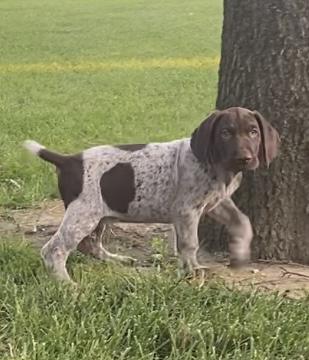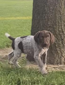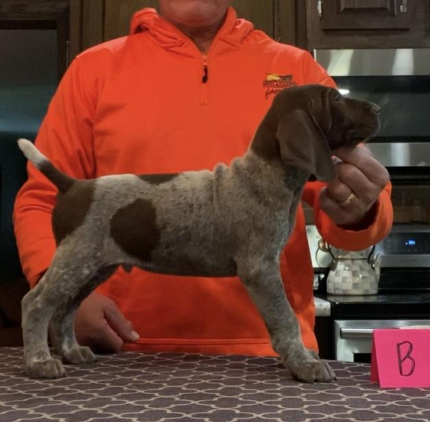 My husband and I have had four German Shorthaired Pointers and we absolutely LOVE the breed. We lost our beloved Kenny to bone cancer on February 1st. I immediately started looking for a GSP breeder. I contacted Rod and was quite impressed with his knowledge and love for the breed also. He sent me pictures of the parent dogs along with puppy pictures from previous litters. He was easy to talk to and took his time speaking with me. He said he has been breeding GSPs for four years. Rod researches the bloodlines and pays extra close attention to the details; he knows what he is doing!! He called me as the puppies were being born on March 18th. We went to look at the puppies in April and chose one that our seven year old grandson seemed to favor a lot. This past Sunday we went to bring our wonderful puppy home. He is such a GOOD puppy!! He is laid back, easy going and well adjusted. My daughter is a professional dog trainer and I asked her what she liked best about our new puppy and her response was his chill. I wholeheartedly give Rod a rating of 5 stars. He is more than willing to work with you to find the right puppy!! All our previous GSPs were liver and white ticked but JJ is black and white. His solid black head looks and feels like black velvet.