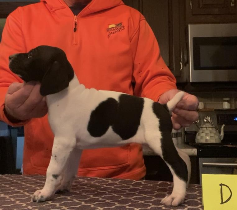 My husband and I have had four German Shorthaired Pointers and we absolutely LOVE the breed. We lost our beloved Kenny to bone cancer on February 1st. I immediately started looking for a GSP breeder. I contacted Rod and was quite impressed with his knowledge and love for the breed also. He sent me pictures of the parent dogs along with puppy pictures from previous litters. He was easy to talk to and took his time speaking with me. He said he has been breeding GSPs for four years. Rod researches the bloodlines and pays extra close attention to the details; he knows what he is doing!! He called me as the puppies were being born on March 18th. We went to look at the puppies in April and chose one that our seven year old grandson seemed to favor a lot. This past Sunday we went to bring our wonderful puppy home. He is such a GOOD puppy!! He is laid back, easy going and well adjusted. My daughter is a professional dog trainer and I asked her what she liked best about our new puppy and her response was his chill. I wholeheartedly give Rod a rating of 5 stars. He is more than willing to work with you to find the right puppy!! All our previous GSPs were liver and white ticked but JJ is black and white. His solid black head looks and feels like black velvet.