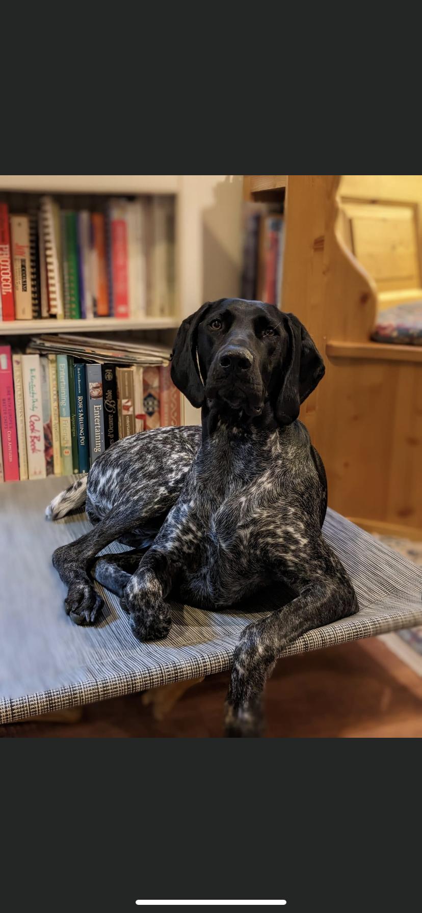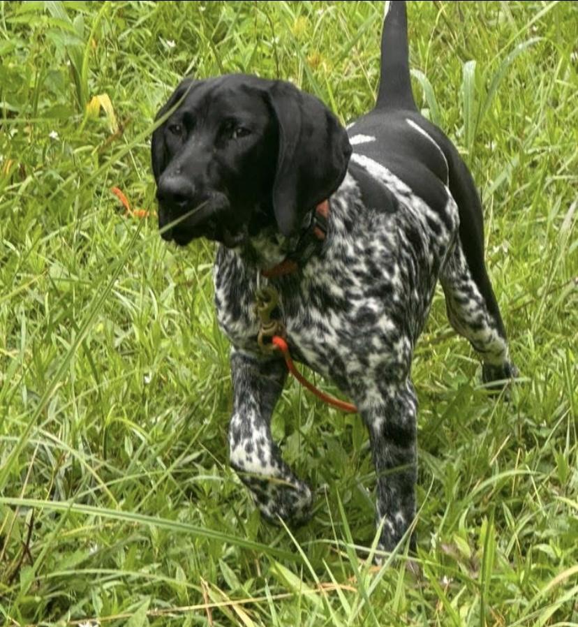 My husband and I have had four German Shorthaired Pointers and we absolutely LOVE the breed. We lost our beloved Kenny to bone cancer on February 1st. I immediately started looking for a GSP breeder. I contacted Rod and was quite impressed with his knowledge and love for the breed also. He sent me pictures of the parent dogs along with puppy pictures from previous litters. He was easy to talk to and took his time speaking with me. He said he has been breeding GSPs for four years. Rod researches the bloodlines and pays extra close attention to the details; he knows what he is doing!! He called me as the puppies were being born on March 18th. We went to look at the puppies in April and chose one that our seven year old grandson seemed to favor a lot. This past Sunday we went to bring our wonderful puppy home. He is such a GOOD puppy!! He is laid back, easy going and well adjusted. My daughter is a professional dog trainer and I asked her what she liked best about our new puppy and her response was his chill. I wholeheartedly give Rod a rating of 5 stars. He is more than willing to work with you to find the right puppy!! All our previous GSPs were liver and white ticked but JJ is black and white. His solid black head looks and feels like black velvet.