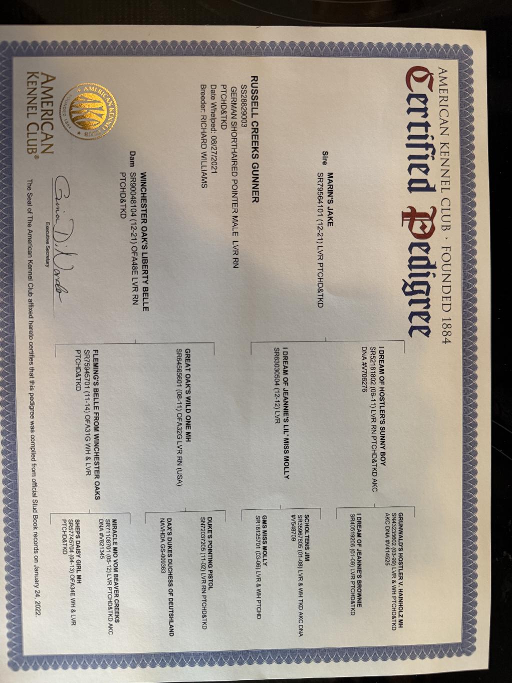 I have seven GSP for sale. Both Sire and Dam are excellent hunters. Due to limited registration of dam the puppies can not be registered, hence the price. If you are looking for good hunting dogs this might be pup for you. Willing to meet up to an hour away (60 miles) will delivery up to four at $1 a mile. #gundogs #gundogcentral #huntingdogs #sportdog #fielddog #dogsofgundogcentral #germanshorthairedpointer #puppiesforsale #liverwwhite &tick #forsale #gundogsforsale #huntingdogsforsale #peebles #ohio