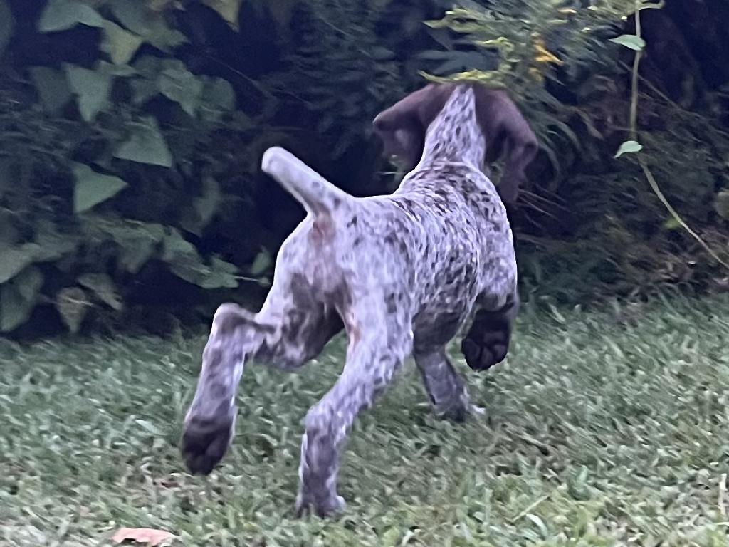 I have a female GSP puppy with Champion bloodlines that was born on June 18th, 2025. She is ready for her new home. My puppies are up to date on vaccinations when they are picked up. They can be AKC and NAVHDA Registered. Parents are OFA health tested. These shorthairs are outstanding companions with ideal dispositions.