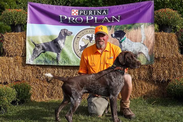 Boone was extremely easy to train as he likes to be acclaimed. He loves the water and is one of the best duck dogs I have ever seen. His ability to follow commands and retrieve to hand makes him an excellent dog for upland birds and waterfowl. Boone is a Versatile Champion. He received Natural Ability Prize II with 108 points and a Utility Prize 1 with 201 points. His father is a Dual Champion, Amateur Field Champion, NGSPRA RU Champion, and a Master Hunter. His mother is a Versatile Champion, and she has a Retrieving Dog Excellent Title. Boone comes from a long lineage of Versatile Champions.