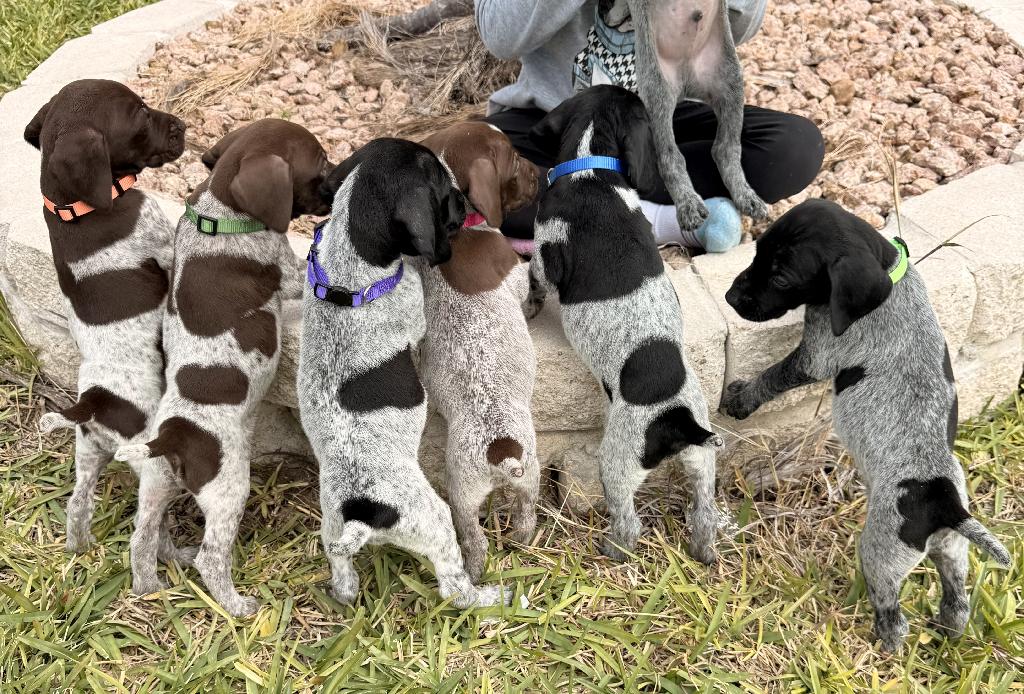 I currently have 7 beautiful AKC German Shorthaired Pointer puppies available — 3 females and 4 males.