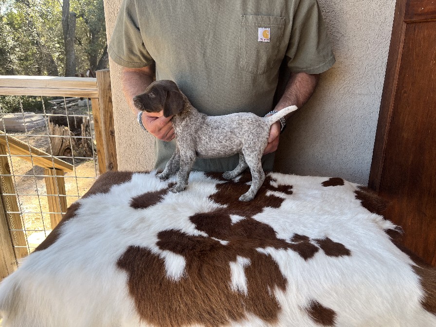 This is a great looking liver, white, with ticking German Shorthaired Pointer puppy out of Ruby and Maximillians litter. Millie is a heavy boned pup with excellent balance and muscle. She will make a great hunter/companion. Renay is a happy pup with plenty of confidence. This pup will be an intelligent, fast learner. She will connect with her new family quickly. Healthy and happy. Current on vaccinations and ready to go.
