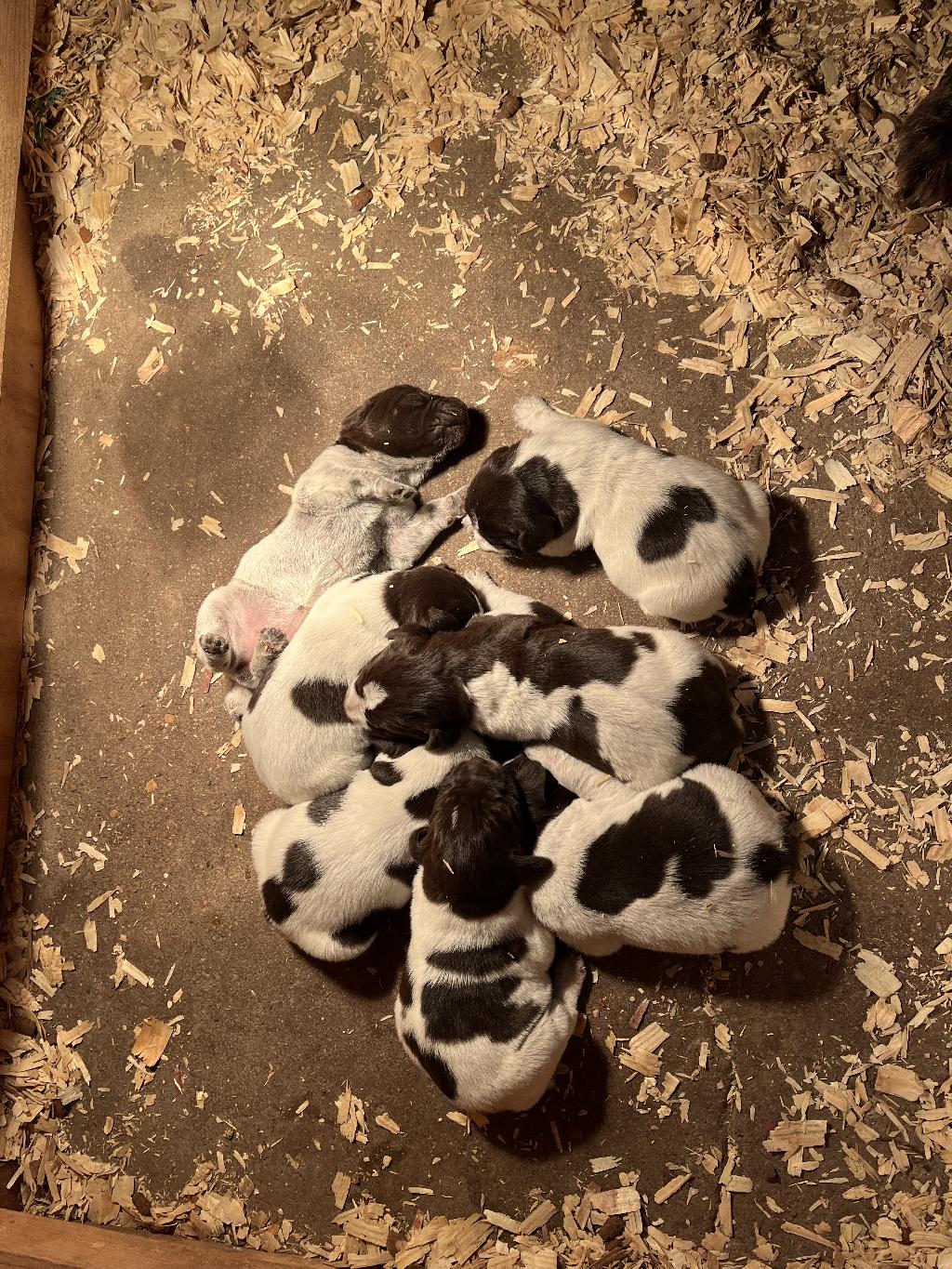 Huck x June Planned litter born 01/28/25. 3 Females/ 4 males. Deposits currently on 3 pups! Pups will be ready at the end of March! These are very social farm raised dogs! Please don’t message; call only at 316.680.5138! Location: Norton, Ks. 67654. AKC registration is provided! #gundogs #gundogcentral #huntingdogs #sportdog #fielddog #dogsofgundogcentral #germanwirehairedpointer #puppiesforsale #liverroanwpatches #forsale #gundogsforsale #huntingdogsforsale #norton #kansas