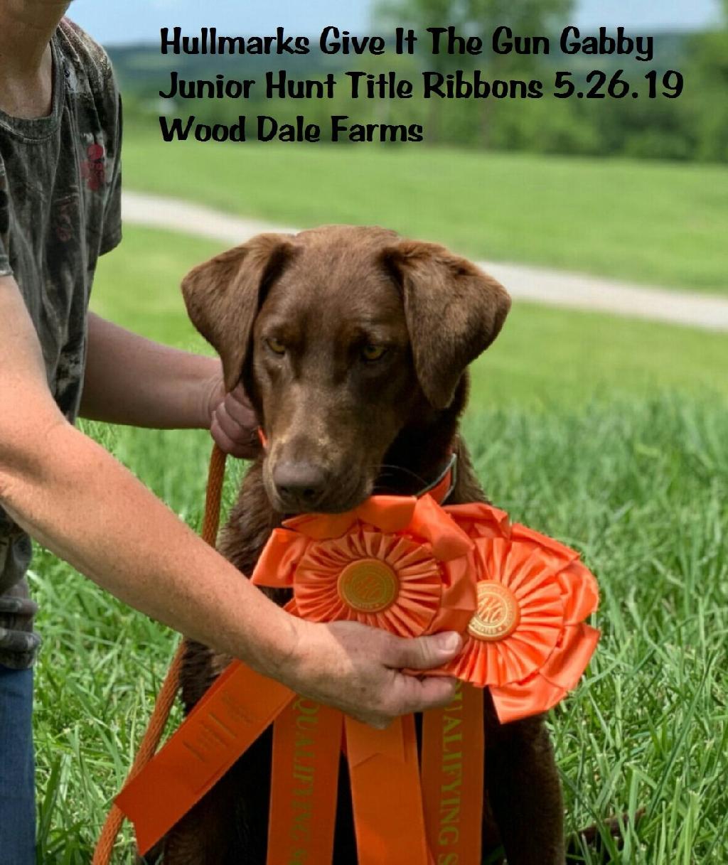 Hullmarks Give It The Gun Gabby has her AKC Junior Hunter title and is a good started waterfowl dog...Mainly want her to go to good home that waterfowl hunts...VIEW BOTH VIDEOS WITH AD...On phone they are at bottom, If on computer click on videos...Gabby is ready for waterfowl hunting after retiring from being a mama.... She has been force fetched, retrieves to hand, sits well until sent, and recalls excellent, loads into a vehicle carrier well, returns easily to her pen with a verbal Gabby. Kennel.... She loves attention and has been excellent with my grandkids...Gabby is eight years old, 60#, and spayed...She was my pick from one of our litters...
