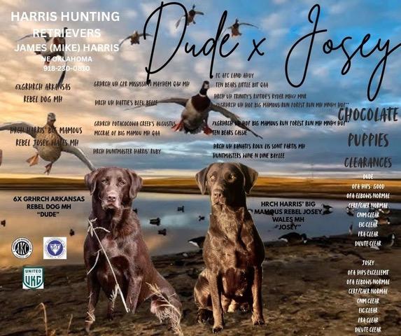 6xGRHRCH Arkansas Rebel Dog MH (Dude) x HRCH Harris Big Mamous Rebel Josey Wales MH pups born 9/14/25.