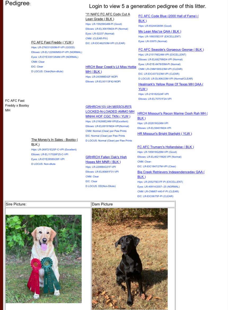 • Elite Pedigree: From 2011 NAFC FC AFC Cody Cut A Lean Grade × HRCH Bear Creeks Lil Miss Hottie MH