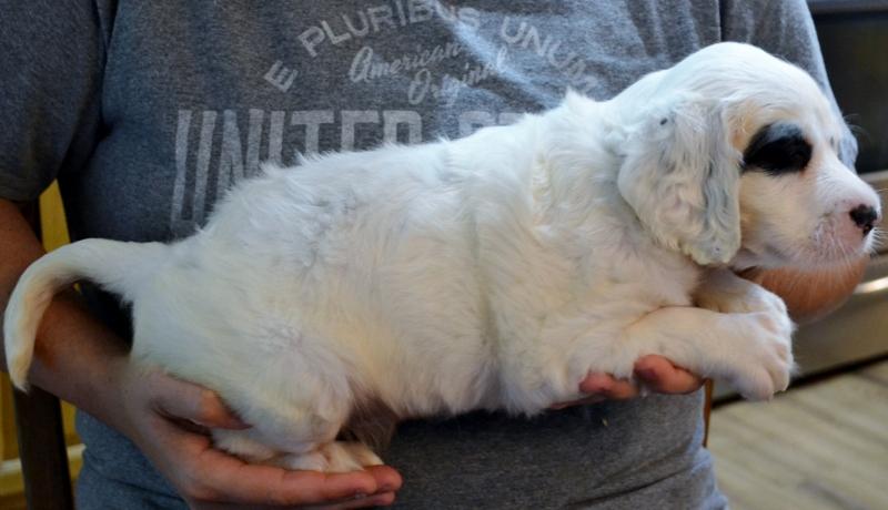 100% Llewellin Setter pup of 100% Pure Dashing Bondhu bloodlines and generations of foot hunting Certified Gun Dogs and wonderful family companions. Award winning breeder, breeding for 54 years, always a Life-Time Satisfaction Guarantee! Puppy number D25M4.