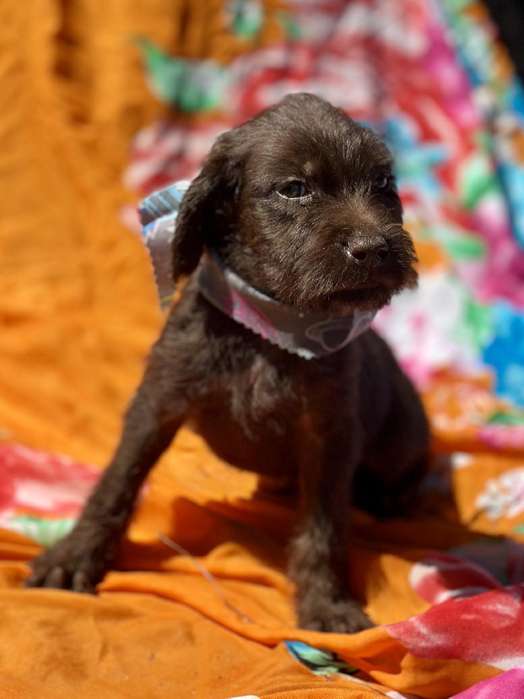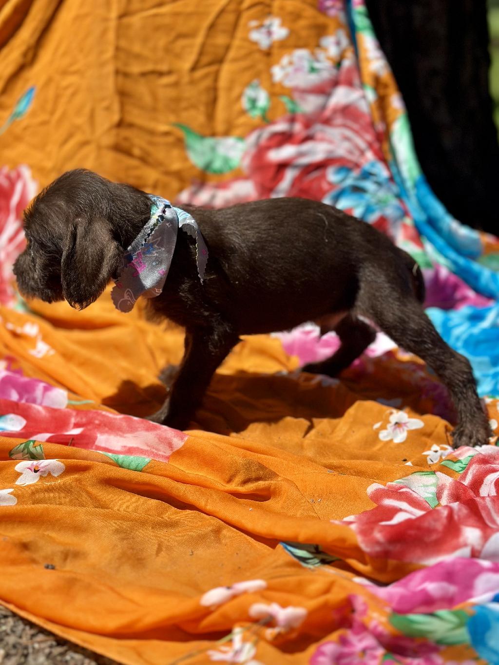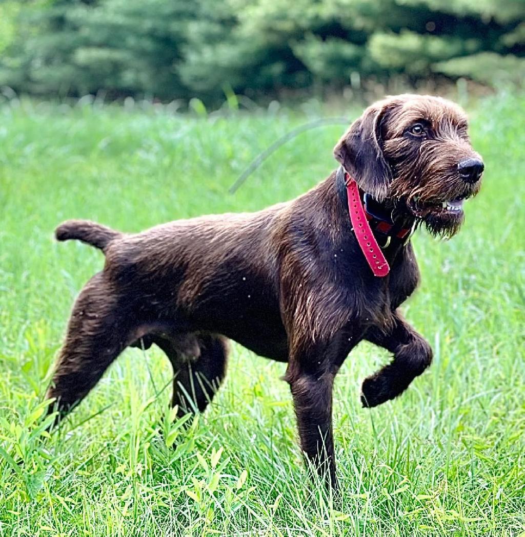 Dam: A medium-to-big ranging hunter with real-world wild bird experience. She’s a cherished house dog with a calm, loving temperament, especially around children and puppies.