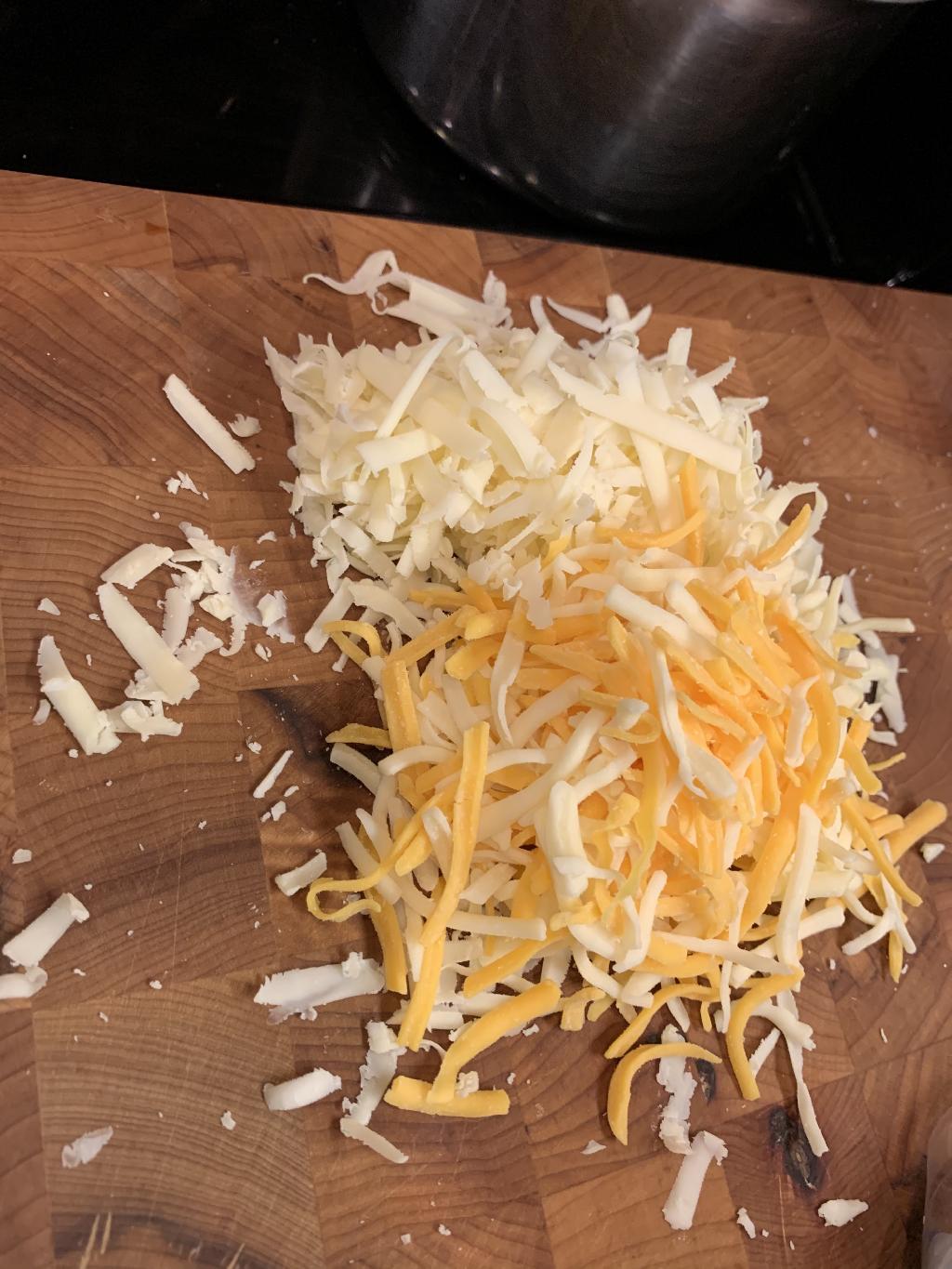 Step #2 Grate all your cheese if you didn't buy it pre-shredded.