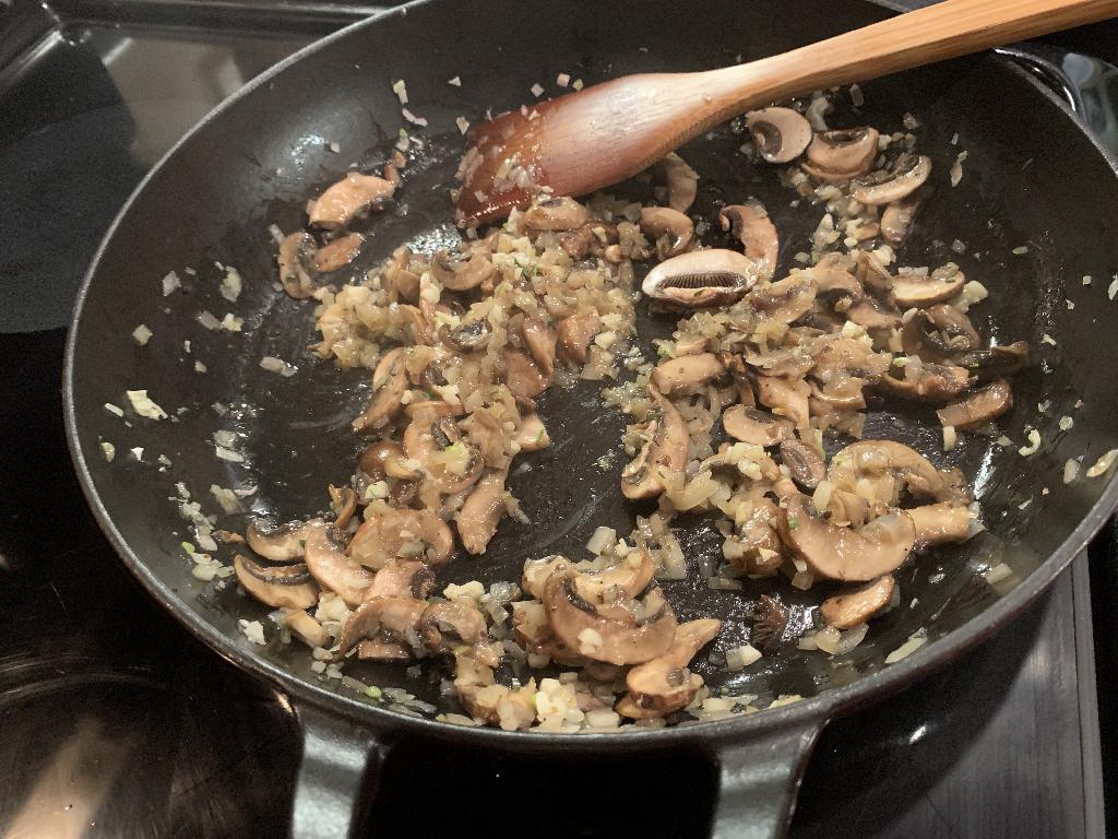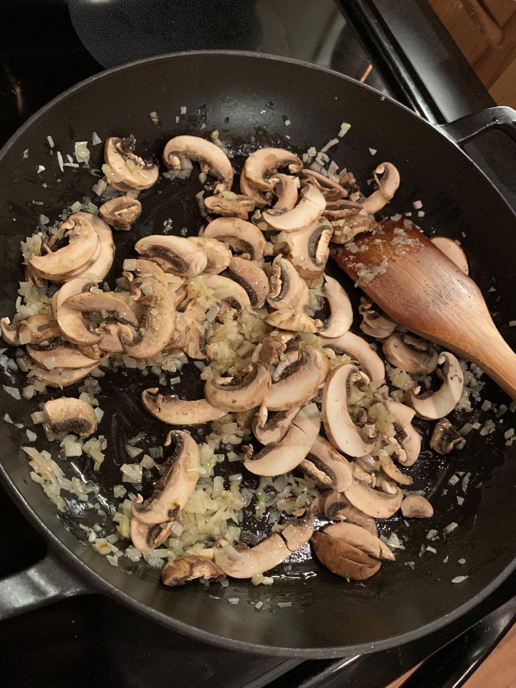 Step #10 Add shallots and mushrooms to hot oil and cook for 5 minutes or until the mushrooms are soft and starting to brown on the edges. Season with salt and pepper.