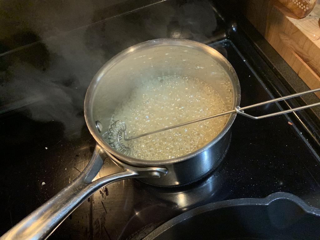 Step #1 Make brine by combining water, 4 tablespoons of Kosher Salt, Juniper Berries, Peppercorn, Cloves and Bay Leaf in a pot, bring to a boil then reduce to a simmer. Cook for 10 minutes. Then turn off heat and allow to cool to room temperature.