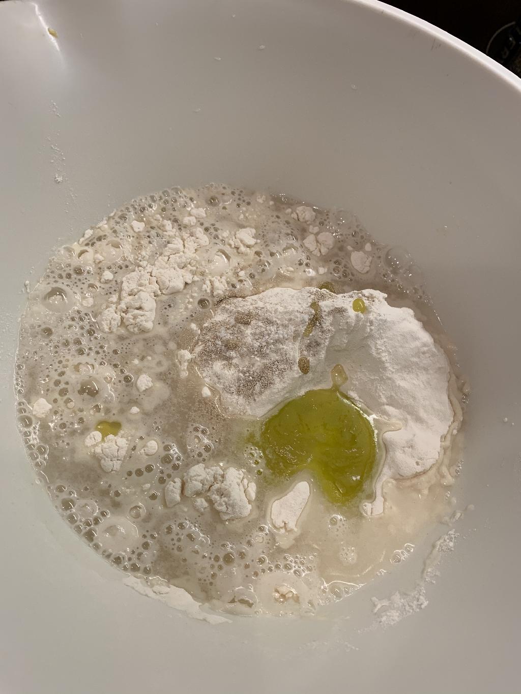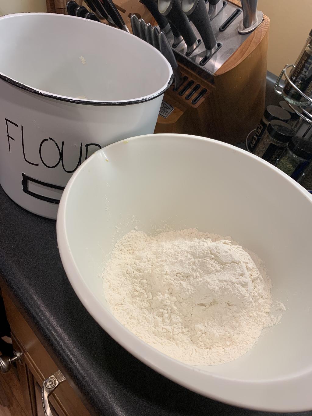 Step #1 Combine flour, yeast, kosher salt to mixing bowl
