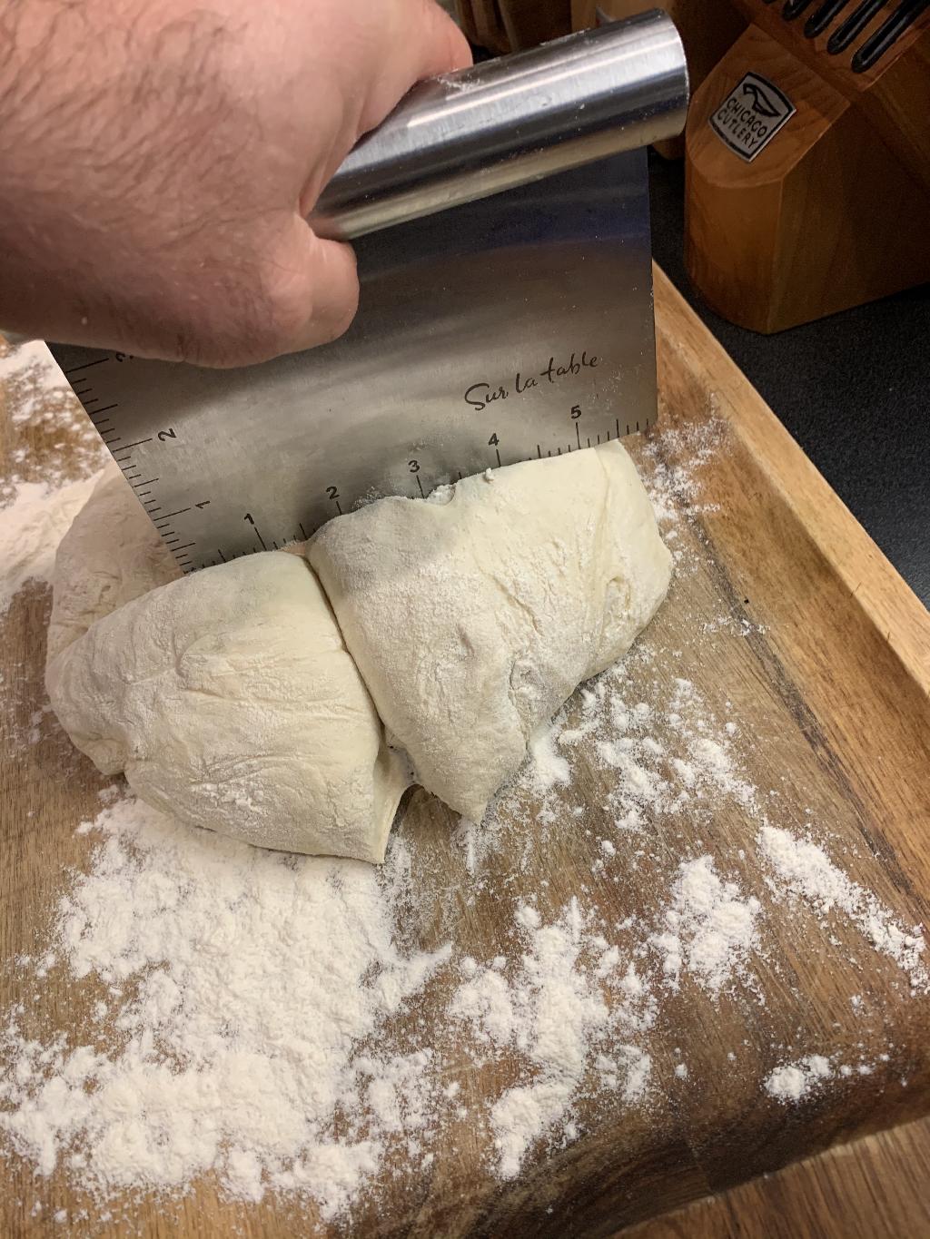 Step #8 After one hour, punch the dough down and divide out into equal size buns. Cover your hands and tools with flour to prevent dough from sticking.