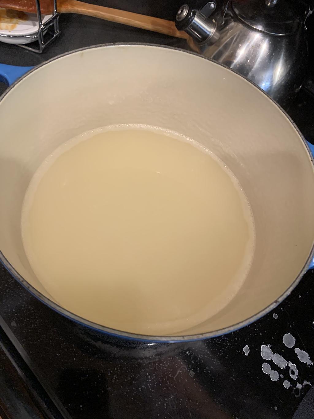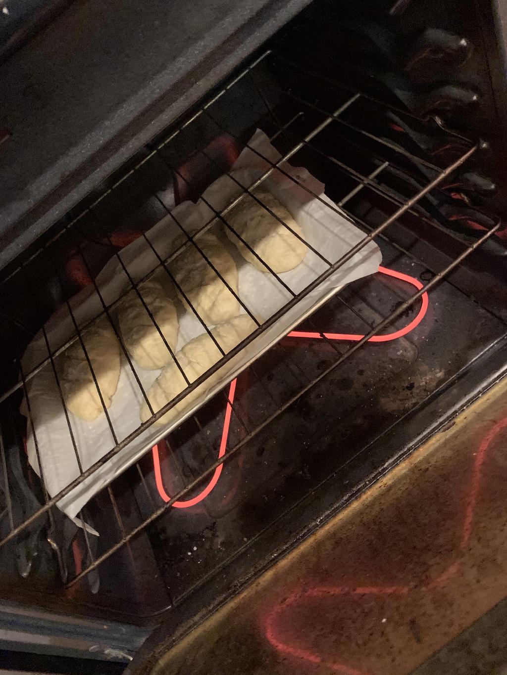 Step #10 Preheat oven to 425 and bring 1/2 gallon of water to boil then add 1/2 cup baking soda. Place buns in water for a 30 second, flip and cook for another 30 seconds. Remove with slotted spoon to baking sheet and allow to dry.