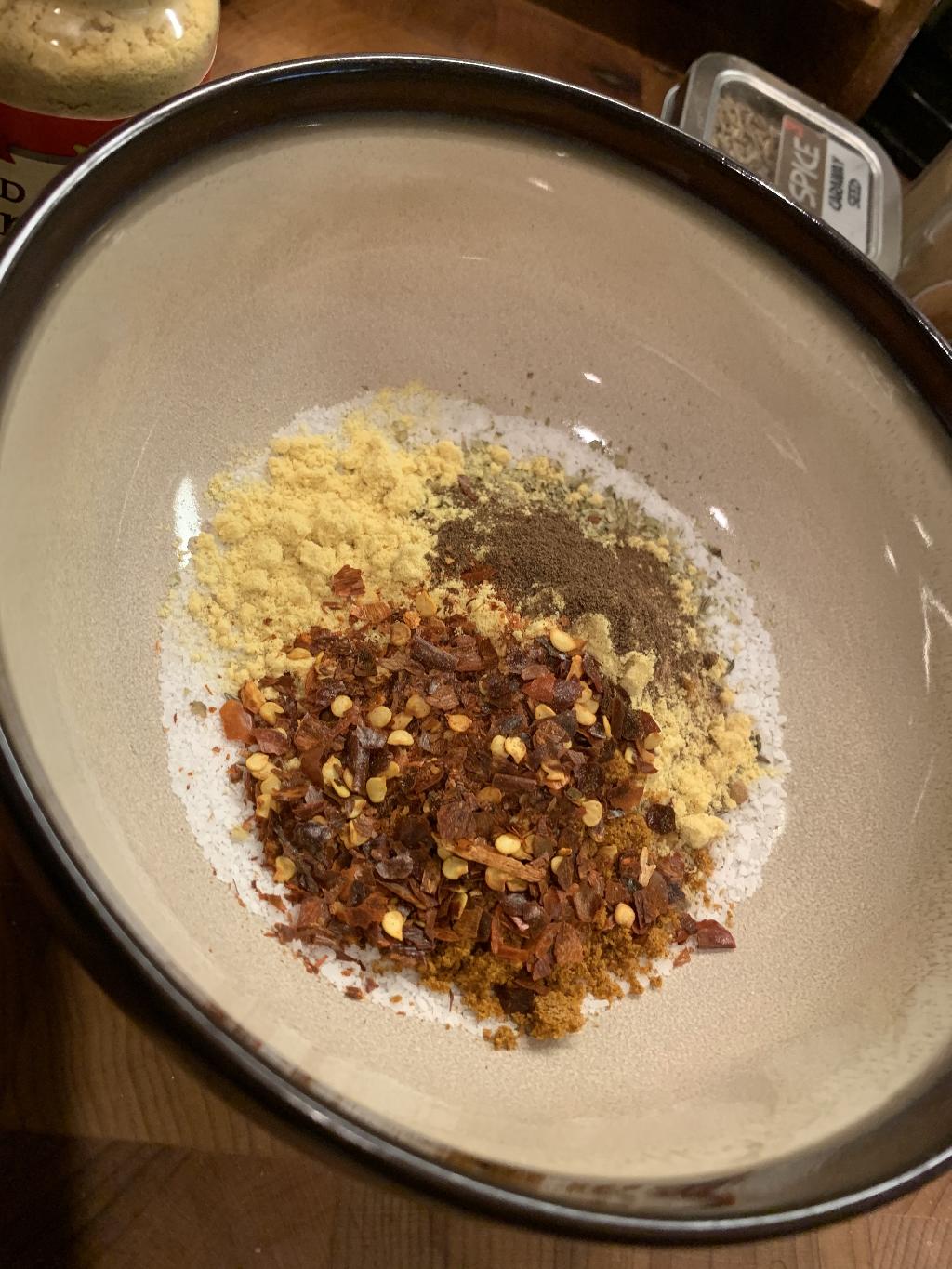 Step #1 Crush the caraway seeds in Mortar then mix remain spices together in a bowl.