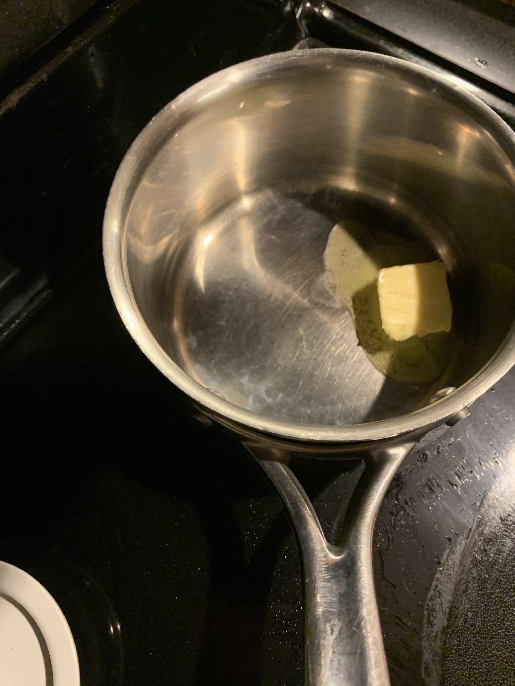Step #1 Add butter to medium size sauce pan and set heat to medium