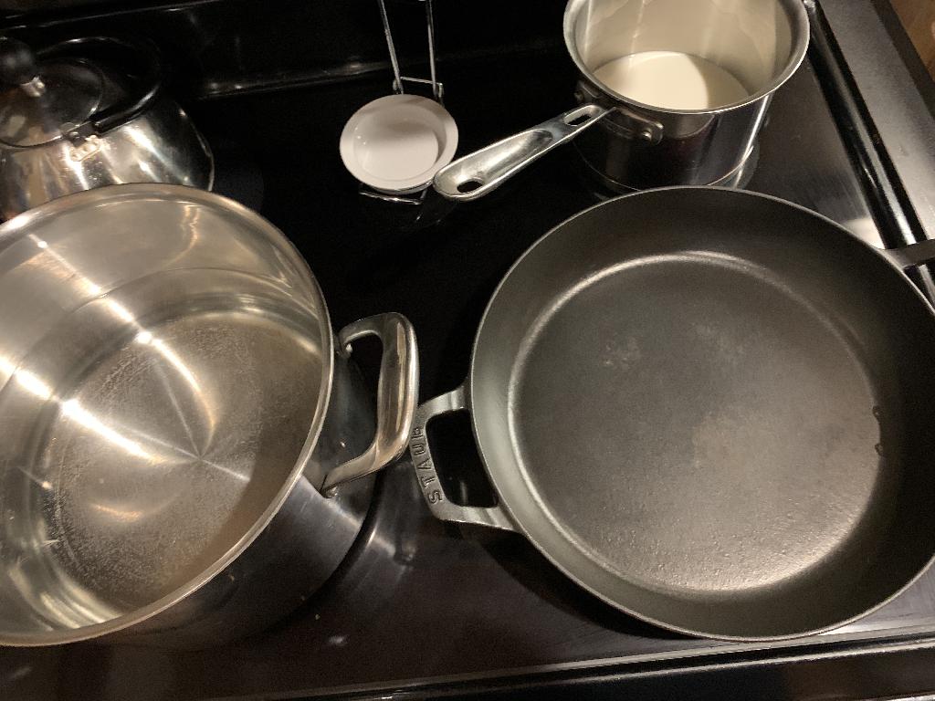 Step #1 Fill stock pot with water and place on stove, set heat to high. Add milk to sauce pan and set to low heat.